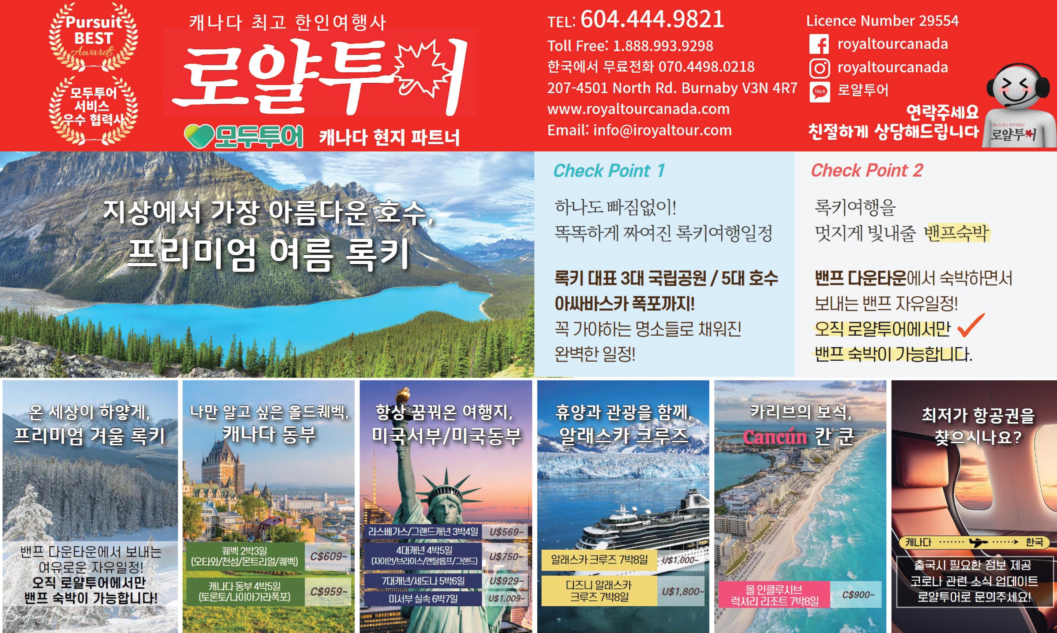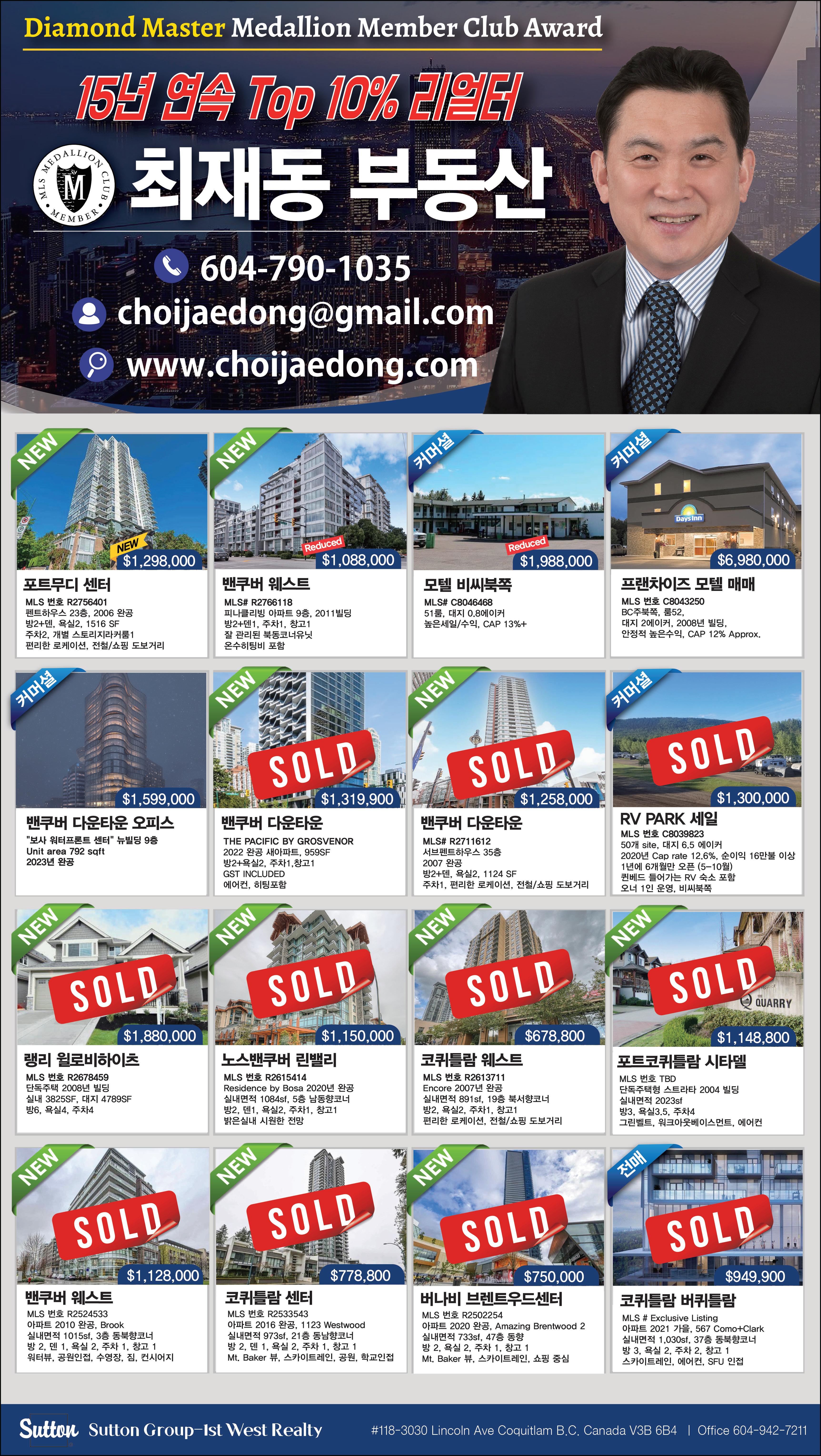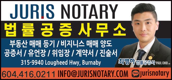 $100/월 16회 신문발행4회 &인터넷 e-중앙일보 (매주 화,수,금,토 발행) 지금 연락하십시오. 바로 내일 게재됩니 다 중앙타운 & 홈페이지 업소록 광고문의 Tel. 604-544-5155 Ema .joinsmediacanada.com el: 604-544-5155/5150/5153 Email: ad@joongang.ca Printed on May 2nd, 2023 부동산 매매 등기 / 공증서 / / 유언장 / 비지니스 매매 / / 양도위임장 / 계약서 / 진술서 604.416.0211 법률 공증사무소 최병하 법률공증사 헬스타운 비타민 쇼핑몰 OPEN gdvitamin.c om 건강식품 3000여종 취급, 저렴한 가격, 한국택배까지 박보영 Bo Vancouver West 전문 [주택/아파트 “29년 경력의 전문가 22년 상담 604-319-6330 “올바른 학습방법, 기분좋은 학습결과” www.eliteprep.c a Junior Elite Prep Consulting 604.736.8922 생명보험/연금보험/교육적금 하다 현 A G ATH A H A T. 6 04 -5 05 - 7 7 3 주택 융자 모기지 전문 부 장 주택/자동차/비지니스/여행자 보험 외 한인종합보험(주 ) 유 용 규 Yong Yoo 604.803.9746 방정희 변호 사 604 559 147 0 파이오니아 법무법 인 꼼꼼한 법률서비 스 로 최선을 다하는 한인 1세 대 대표 로펌 주태근/앤디김 회계법인 회계/세무/감사/사업계획 및 상담 T. 604-936-5222 T . 60 4 . 93 6 . 777 7 #101-15375 102A Avenue. Surrey. BC victo r c ga@hotmail. c o m 식당/식품 가디언 한인약 국 Guardian HANIN PHARMACY #201-329 North Rd, Coquitlam 604.939.7880 코퀴틀람 한인빌리지내, 한아름마트 옆 #210-1175 Johnson St, Coquitlam BC V3B 7K1 T 778 285 280 4 아씨마켓 코퀴틀람점이 있 는 Jhon on과 G e n 교차 몰 원 장 임정환 / 원 장 임신영 / 원 장 김경 수 임플란트 · 교정 · 잇몸치 료 신경치료 · 사랑니 · 크라 운 코퀴틀람 센터 그린 치과 오약국 · 가정 의 밴쿠버 한 인 오약국 T. 604-800-2250 604-939-831 1 #100-504 Cottonwood Ave Coquitla m 이글리지 밴쿠버 한인약국 T. 604-941-045 4 #201B-1194 L ansdowne Dr. Coquitla m 하나치과그 룹 김영복 원장 / 임신영 원장 / 김경수 원장 / 임정환 원 장 www.hanin d ental. c o m 진료시간 : 월-금 9 : 30 a m 6pm 토 9 : 30 a m-4p m 버나비 한남슈퍼 3층 310 호 604-421-280 4 604.428.0551 김정화 치과 진료 시간 Mon-Fri 10:00am-7:00pm S t 10:00am-4:00pm (목,일,공휴일 휴진) 103-4501 North Rd Burnaby BC V3N 4R happysmiledental7@gmail. 웨스트캔 이민컨설팅 공인이민컨설턴트 최 주 찬 WestCan Immigration Consulting T: 604-461-0100 www.westcanimm com #304-566 Lougheed Hwy. Coquitlam BC 최고 딜러 기술력 진정 여러분이 찾던 정비 shop Pick up & Delivery Service ▶엔진튠업 ▶쇼바 및 서스펜션 ▶마후라 수리 및 교환 ▶컴퓨터 및 각종 전기장치 ▶각종 오일 및 필터 교환 ▶엔진/밋숀 교환 및 수리 ▶브레이크 수리 및 교환 ▶타이어 교환 및 휠 밸런스 ▶에어컨 및 히터 604-430-8040 5757 Be f d St. Bu by 604.461.4043 604.461.4040 한국어 서비스 English Service 2902 St.Johns Street, Port Moody, BC V3H 2C3 차량 수리기간 중 무료 대차 90% 이상이 고정 고객인 회사 권원 식 부 동 산 T.604-306-6750 bkwonrealtor@gmail com BRUCE KWON PREC 30년 오랜 경험의 전문 리얼터 레스토랑 전문, 맞춤형 부동산 비지니스 / 투자건물 / LEASE / 경매물건 남승오 부동산 C harl es N a m P R E C * 604.710.3897 집매매 콘도매매 부동산 투자 신규분양 미국 캐나다 상법 변호 사 상법 및 부동산법 / 각종 법인 관련 업무 T. 604.433.0787 ALL POINTS REALTY 위니박 부동산 winniepak@remax.net www.winniepark.net 604.813.800 0 김영선 부동산 778.241.5555 밴쿠버 최고의 부동산 전문가 www.youngsunkim.com 건강식품/의료기 교육 학원/학교 금융 보험/은행 법률 회계사/공증/공인번역 버나비 에드먼즈 2호점 T. 604-468-2432 의료 이민/유학 자동차 부동산 가구/건축/인스팩션 Registered Clinical Counsellor, MA, MEd Tel. 778-887-7275 연우심리 상담소 延 友 심리치료 / 놀이치료 / 심리검사 / 부부상담 / 가족상담 604-492-2875 #525-329 North Rd, Coquitlam, BC Tel. 604-992-2580 모 기 지 전 문 가 이경은 광고문의: 604-544-5155 82-2-549-5993 해외투자이민 전문기업 클럽이민과 상담하세요 모기지 실적 1위 604.319.8080 도승준