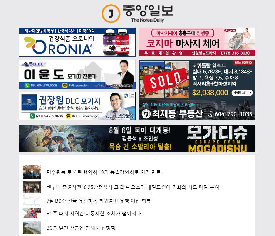 Newsprint & eNewspaper eNewspaper Section A Section B www.joongang.ca eNewspaper Section A Section B www.joongang.ca eNewspaper Section A Section B www.joongang.ca