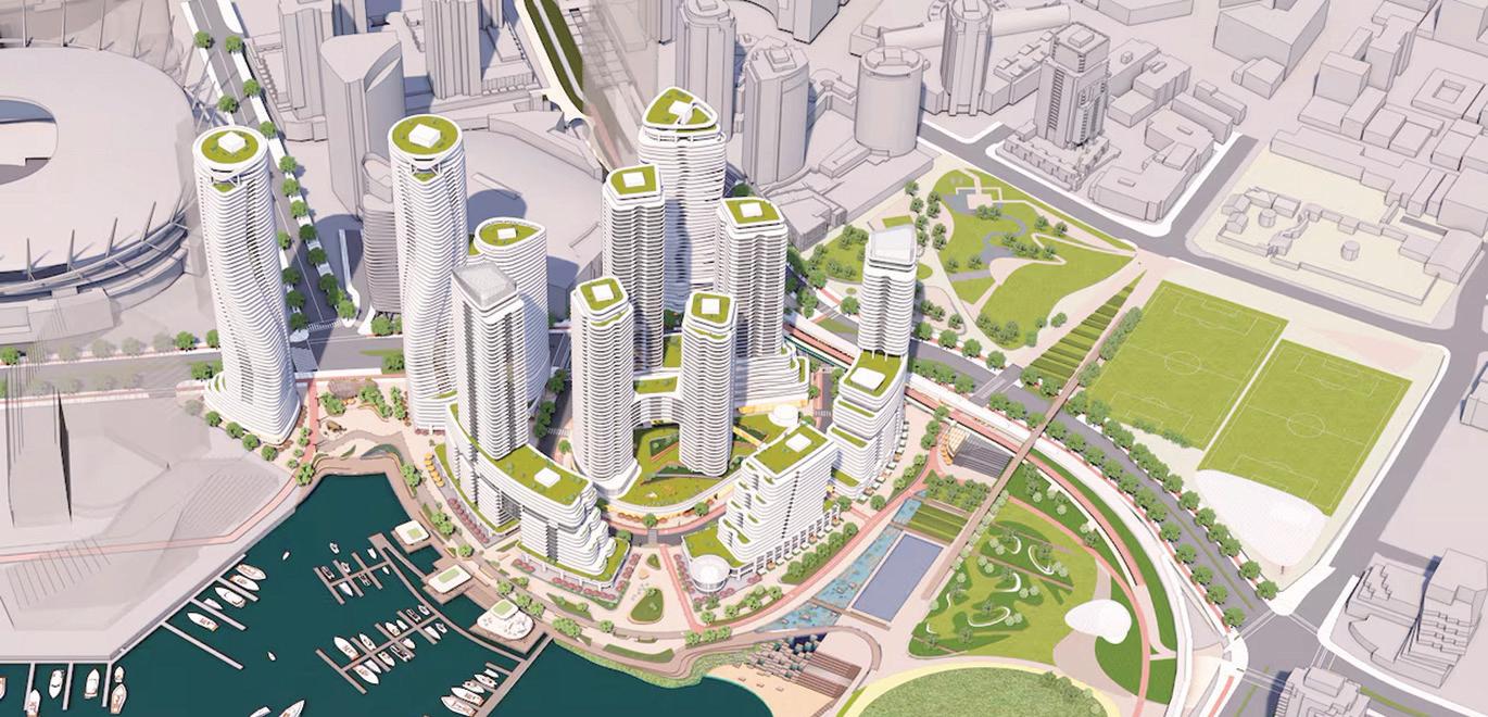 모의 전체 부지에는 최종적으로 20개 의 고층 타워가 들어서 1만 세대 이상