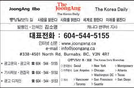 광고문의 Tel. 604-544-5155 Email:ad@joongang.ca www.joinsmediacanada.com