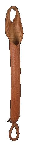 Morfologicamente tambien presenta similitudes con el pez curito, se trata de un cuerpo semi cilindrico hueco, el cual presenta un un anillo reforzado en la parte inferior. La parte superior, por la cual se introduce la yuca tiene una cinta que la vincula al cuerpo principal y es la parte utilizada para colgarlo.