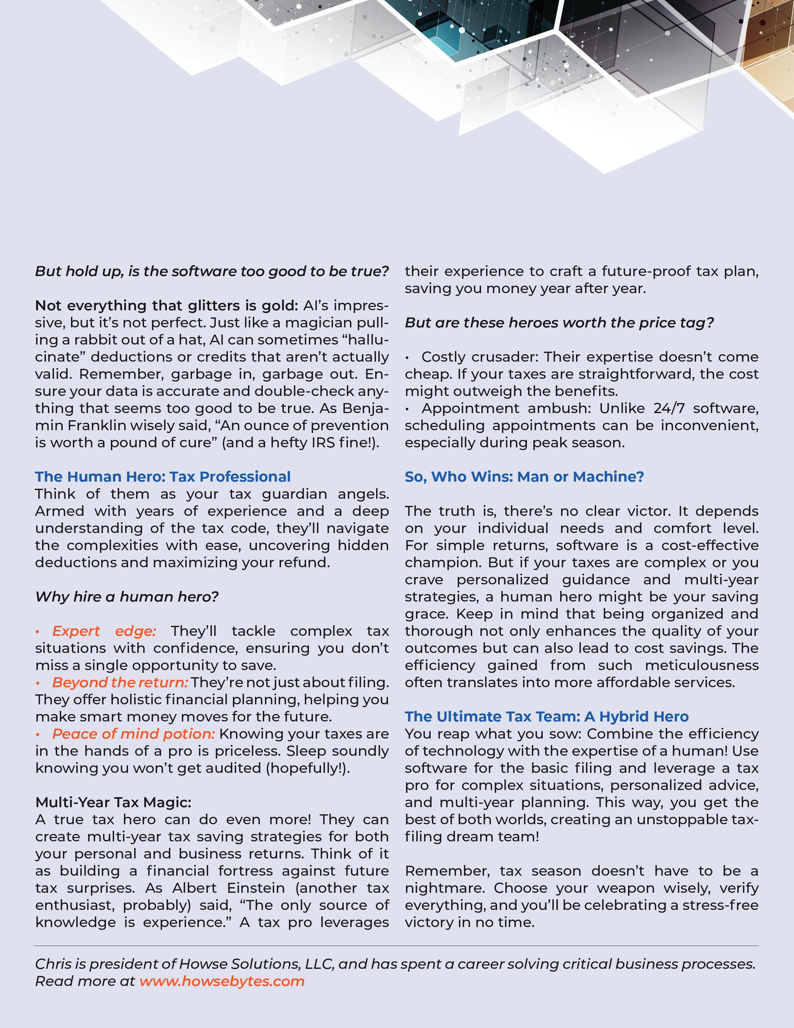 and, thus, may not even be deductible. This said, most small business owners have pretty much the same type of routine business expense items, for example, wages, office or facility rent, insurance, utilities, transportation, and the like. These are pretty straightforward. It gets a little trickier where the expenses may be for a home office, business use of a personal vehicle, travel expenses for trips that are part business, part personal, and so forth. “Again, my advice is to keep solid books and records and ensure you are working with a competent tax advisor along the way,” said Terry.
