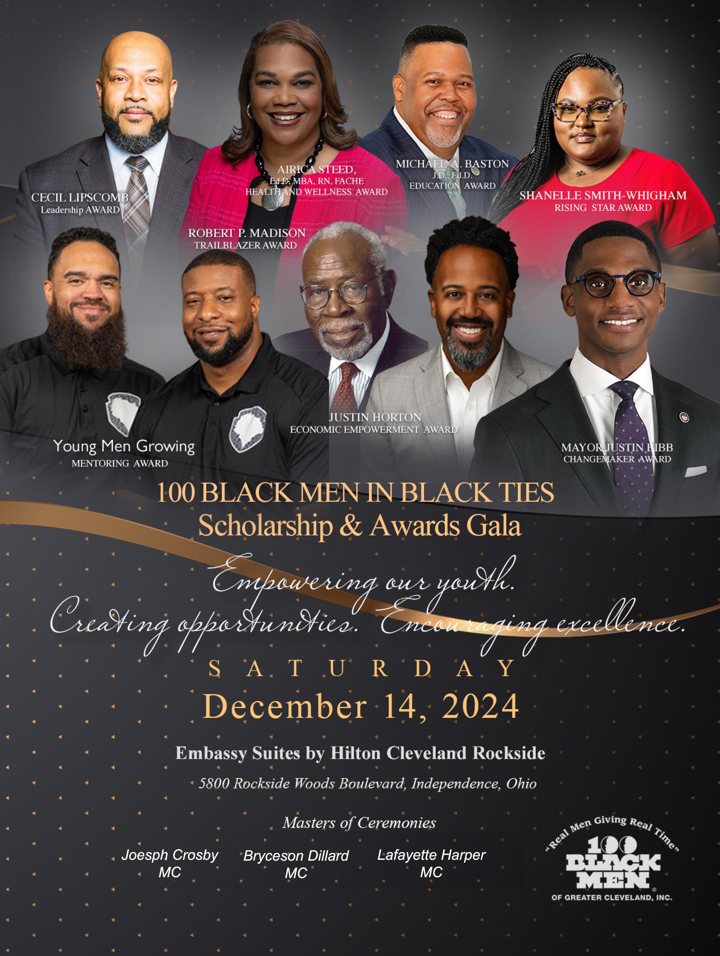 December 14, 2024, will be the day for the 100 Black Men Scholarship and Awards Gala, held at the Embassy Suites by Hilton Cleveland Rockside starting at 6:00 p.m. Over the years, this Gala has been a beacon of celebration, motivation, and affirmation for mentoring young men, and we are excited to continue this tradition of excellence.