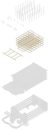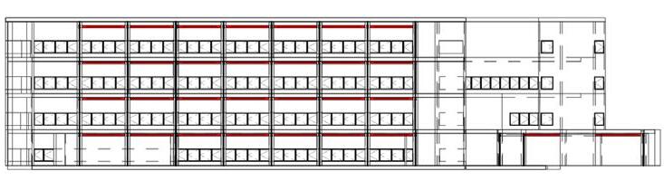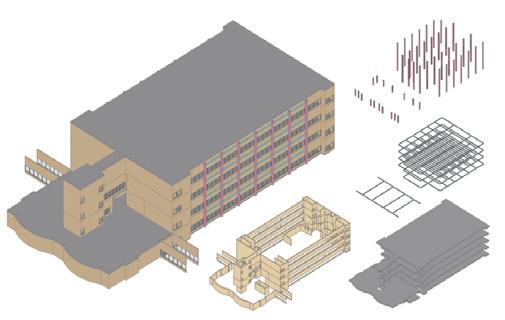 -Replace All Concrete Beams With Glulam Beams. Observations: -The difference in embodied carbon value between the structural framing of Old Block M and new Block M is around 325,222 KHCO2e. -There is a 149 percent decrease in KGCO2e Embodied Carbon Value of glulam beam is -106,340KGCO2e 1 ten years old timber tree 136KGCOe2 782 ten years old timber trees Structural Columns Structural Columns Structural Framing Structural Framing Floors Floors Walls Walls Parts of Block M that would be changed into glulam highlighted in red 3D View 3D View SECTION A-A CEILING PLAN SECTION A-A SECTION B-B 1:100 1:100 1:100 1:100 Exploded axonometric CEILING PLAN 1:100