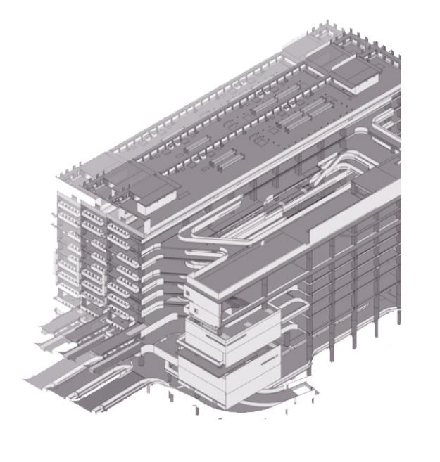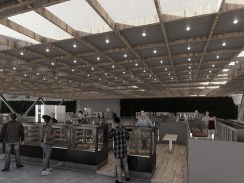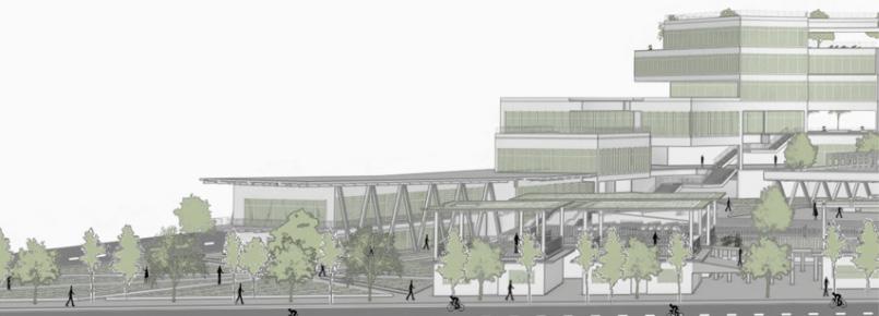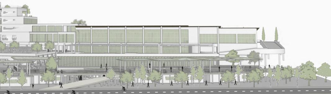 Cycling ramps integrated with the second level of the retail and “EAT” area for the cyclists.