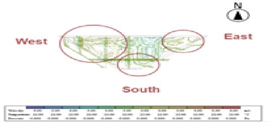 Using the Micro flow analysis to find out the common wind directions and hence creating gaps to encourage more natural ventilation.
