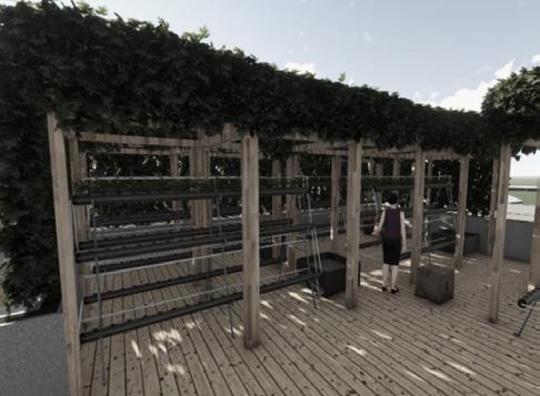Biorentention Tanks (to collect and store rainwater) Water is collected in the tank Rainwater is treated in the tank Rainwater is pumped into other buildings using solar powered pumps INDIVIDUAL STEEL PPVC MODULE EXPLODED AXONOMETRIC OF PPVC MODUELS Hydroponics Exhibition Research Hydroponics Export Hydroponics