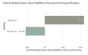 Our objective for this project is to acquire a basic understanding of the embodied carbon value through gaining the ability to identify the structural elements that are the biggest carbon contributor and carbon sinks. Using that knowledge and observations to come out with a solution to reduce the embodied carbon value of Block M.