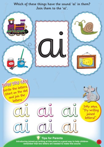 Introducing joined-up writing at this point is a good way to help children remember that two letters are needed to make this sound.