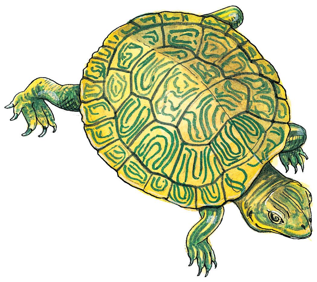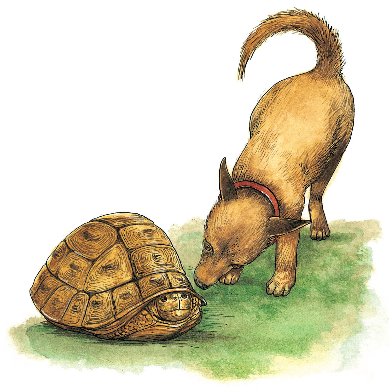 A tortoise or terrapin can tuck its head, legs and tail into its shell if a predator comes along. dog