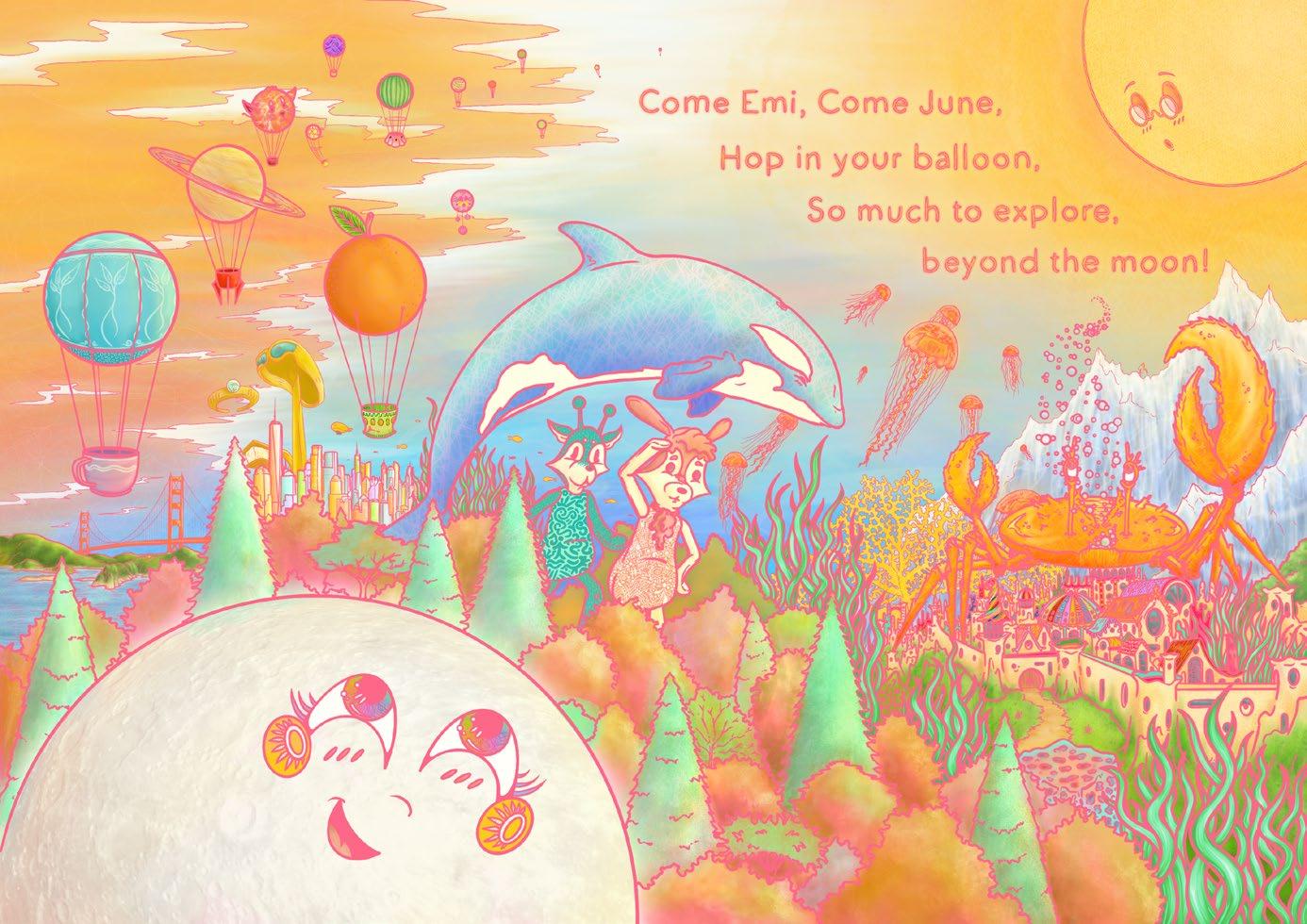 Excerpts from self-authored and self-illustrated children’s book, “Emi and June Go to the Moon”