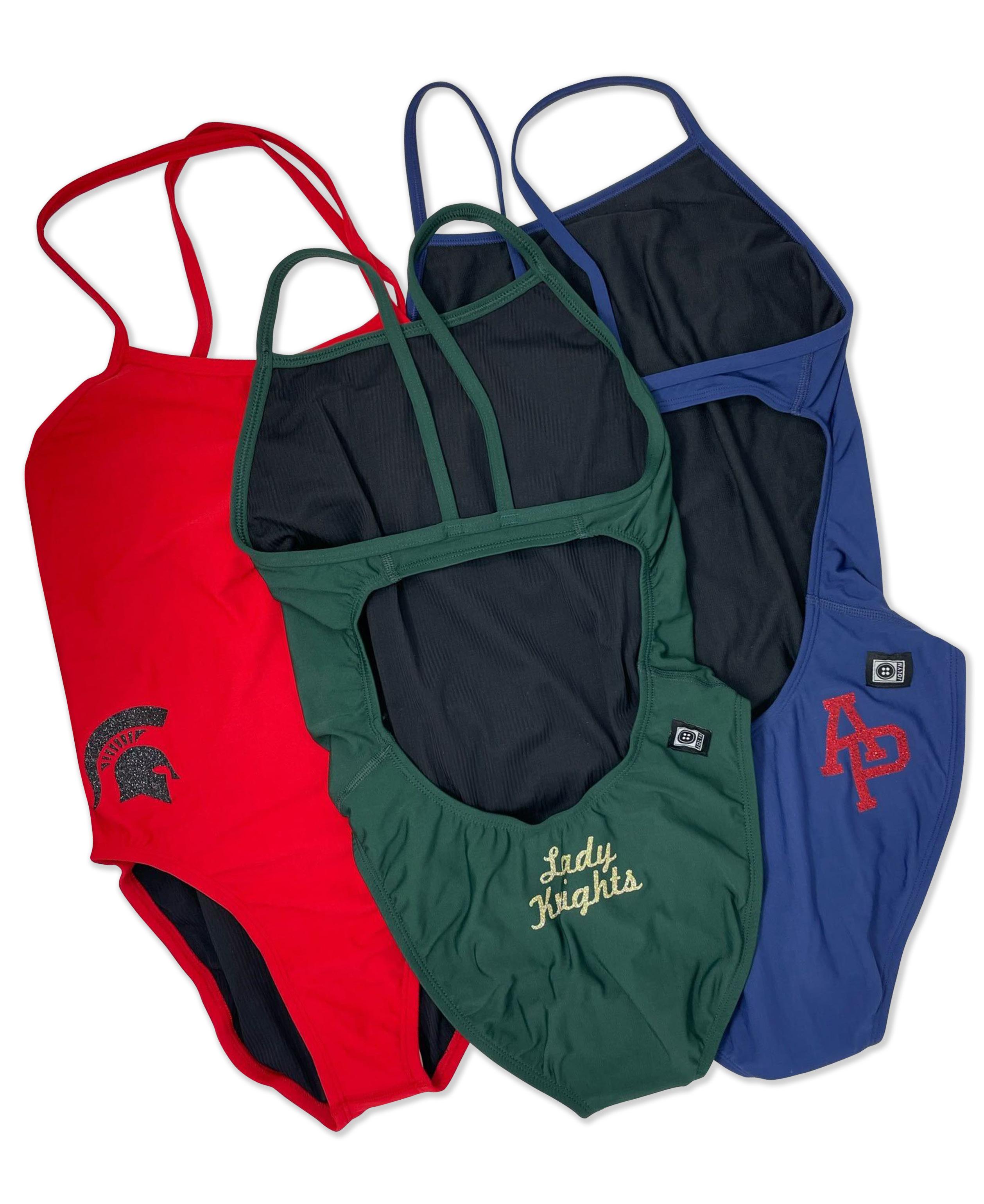 Add your team name or logo on the same quality swimwear we’re known for. Please send your high quality artwork to team sales and mock-ups will be provided.