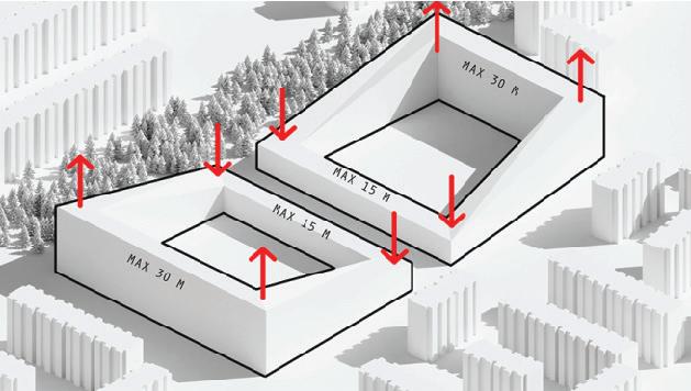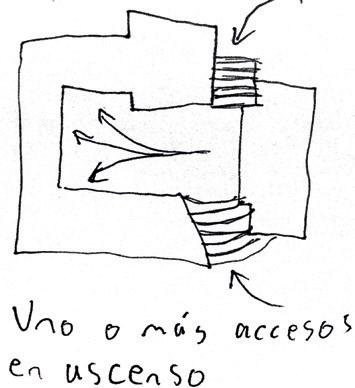 oriental del edicio con el costado occidental Al estar centralizado se asegura una adecuada distribución de las cargas de todos los componentes del edificio Vacío centralizado busca conectar visualmente las salas de exposiciones y la terraza con el resto de la ciudad Vacío de acceso al edificio en asenso como introducción al espacio Sala múltiple con triple altura para permitir que se realicen variedad de eventos Vacío interior en ascenso conecta todas las salas de exposición el vestíbulo de forma vertical Restaurante y véstibulo con doble altura jerarquizan los espacios y permite conexión visual con la ciudad Vacío de conexión directa del edificio junto con el parque, la Carrera 7ma y el resto de la ciudad Envolvente genera distintos tipos de vacíos al interior del edificio Espacios destinados a la vivienda ubicados en la parte superior para permitir privacidad, buena ilumincación ventilación visuales agradables Restaurante busca tener fácil acceso desde la calle generar una espacialidad diferente al momento de atravesar entre estos Sala múltiple al ser el volumen compacto más amplio es más práctico ubicarlo bajo tierra 04.