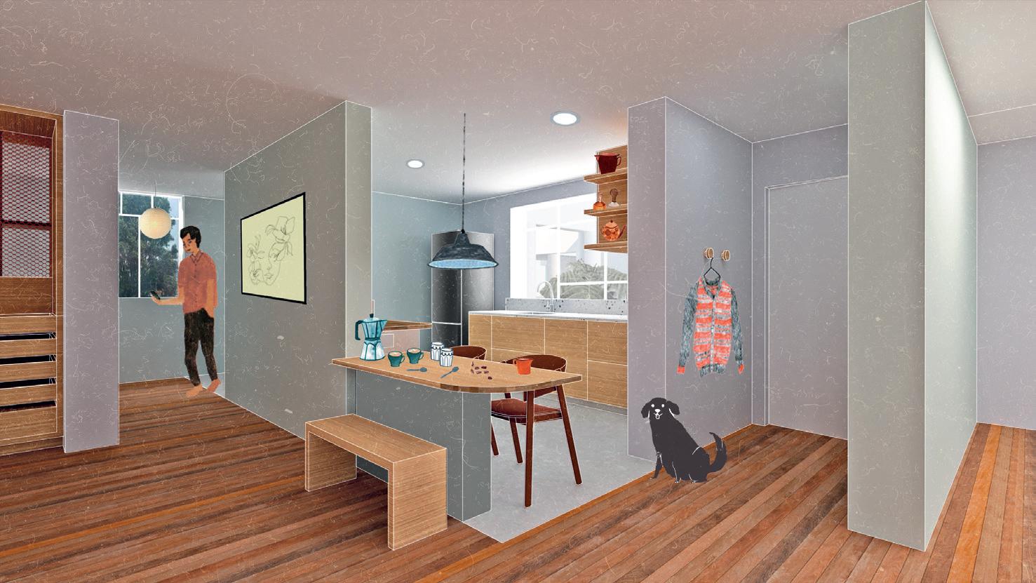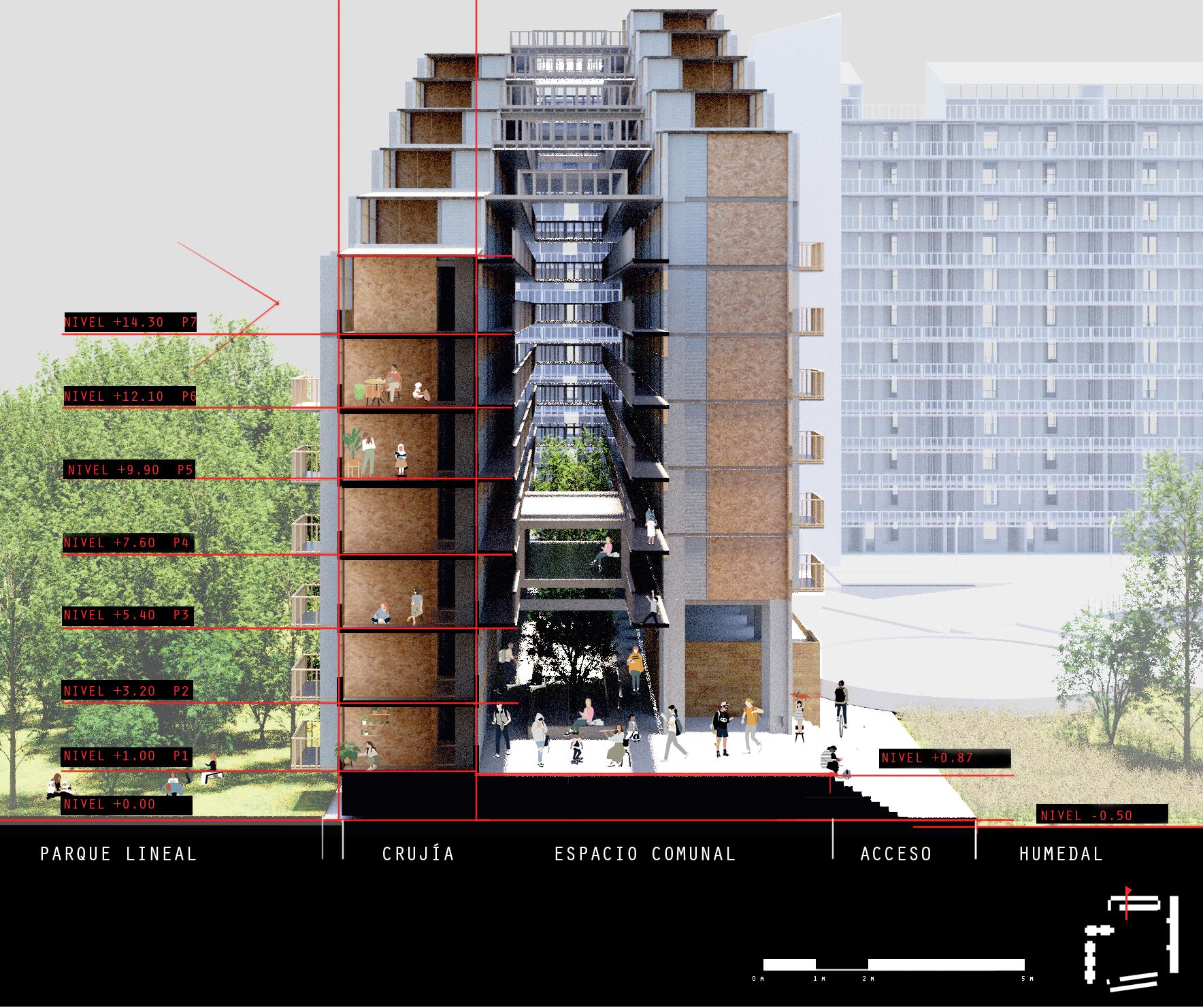 En los bloques de vivienda de interés social se plantea que en primer piso haya la posibilidad de tener vivienda productiva, donde diferentes tipos de familia pueden modular los apartamentos según sus necesidades e intereses.