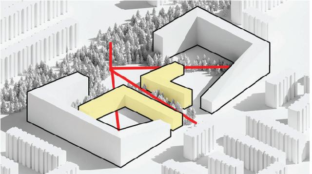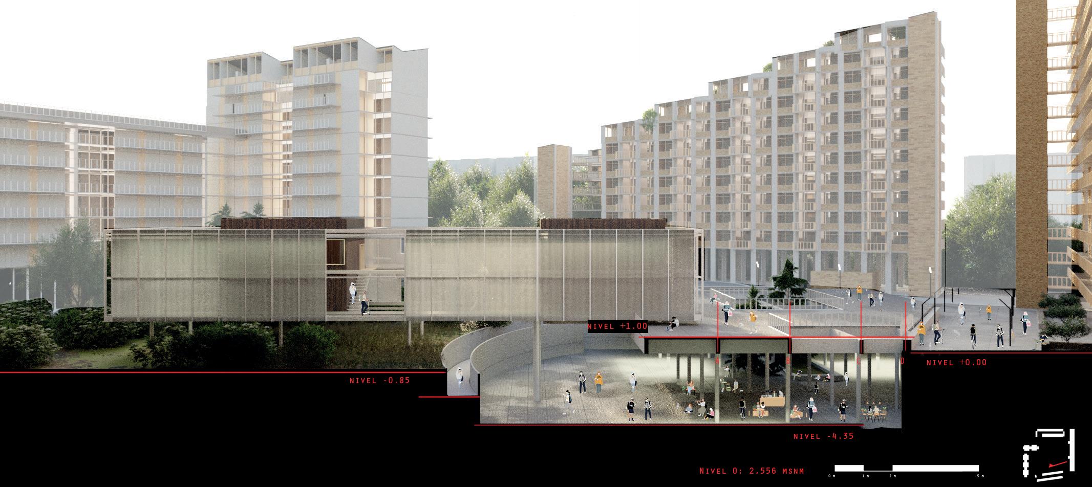 Se enfoca principalmente en la exploración espacial en Corte por medio de conexiones de Vacíos Programáticos, esto complementado una estructura ligera que permita flexibilidad en el espacio, luces amplias, permeabilidad visual con el resto de la ciudad.