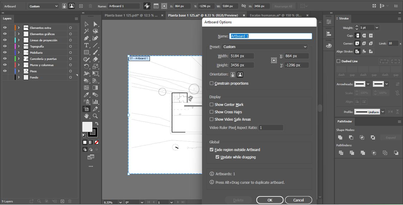 Este procedimiento es muy importante no solo porque optimizamos el flujo de trabajo al organizar todo en capas desde el archivo de BIM o CAD, sino porque al pasar la información a Ilustrator podemos hacer los cambios necesarios para pasar a Photosho o InDesign. Todo con un flujo de trabajo no destructivo