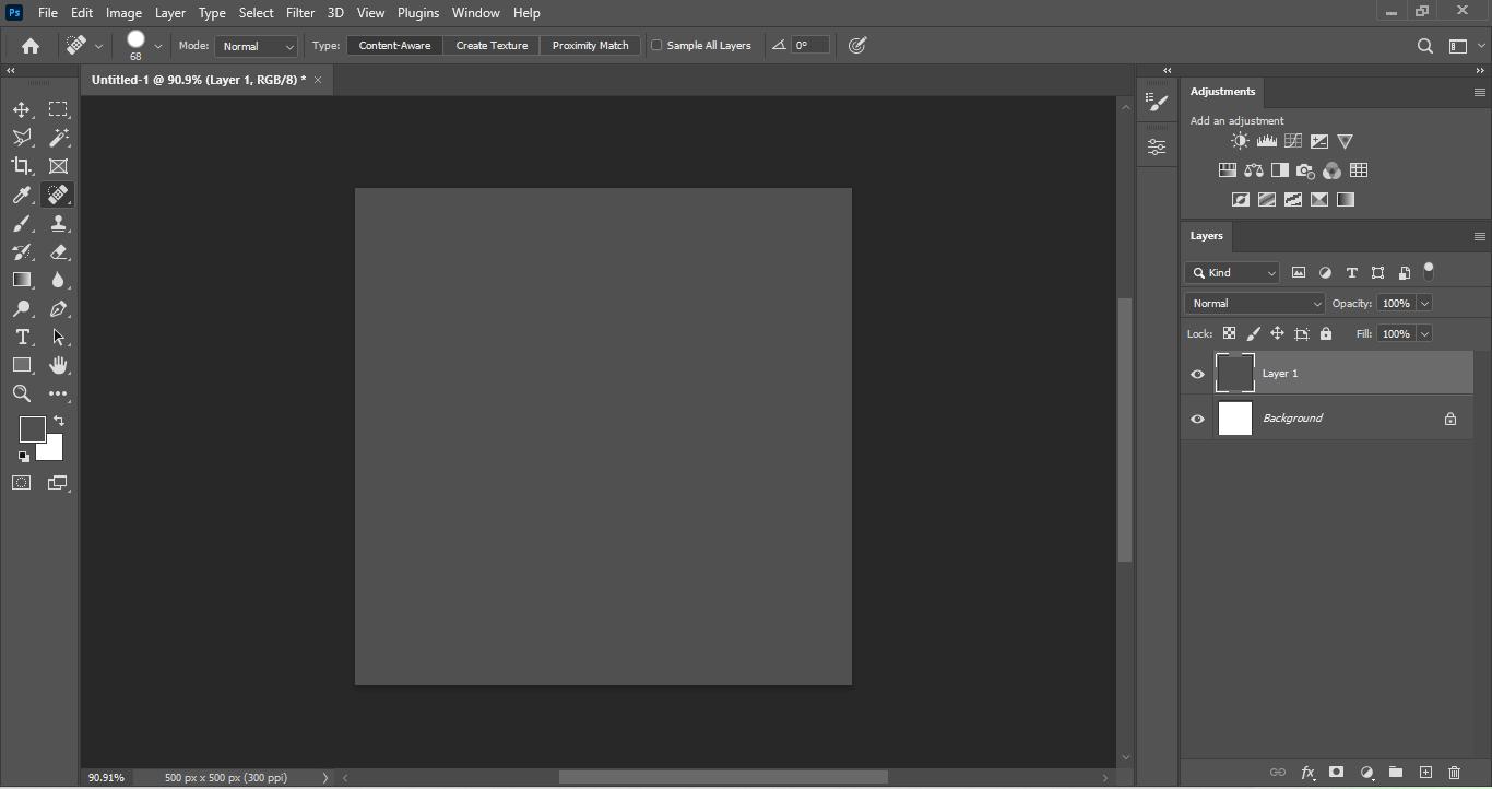Para crear patrones seamless (sin uniones) creamos un archivo de photoshop de 500x500 px