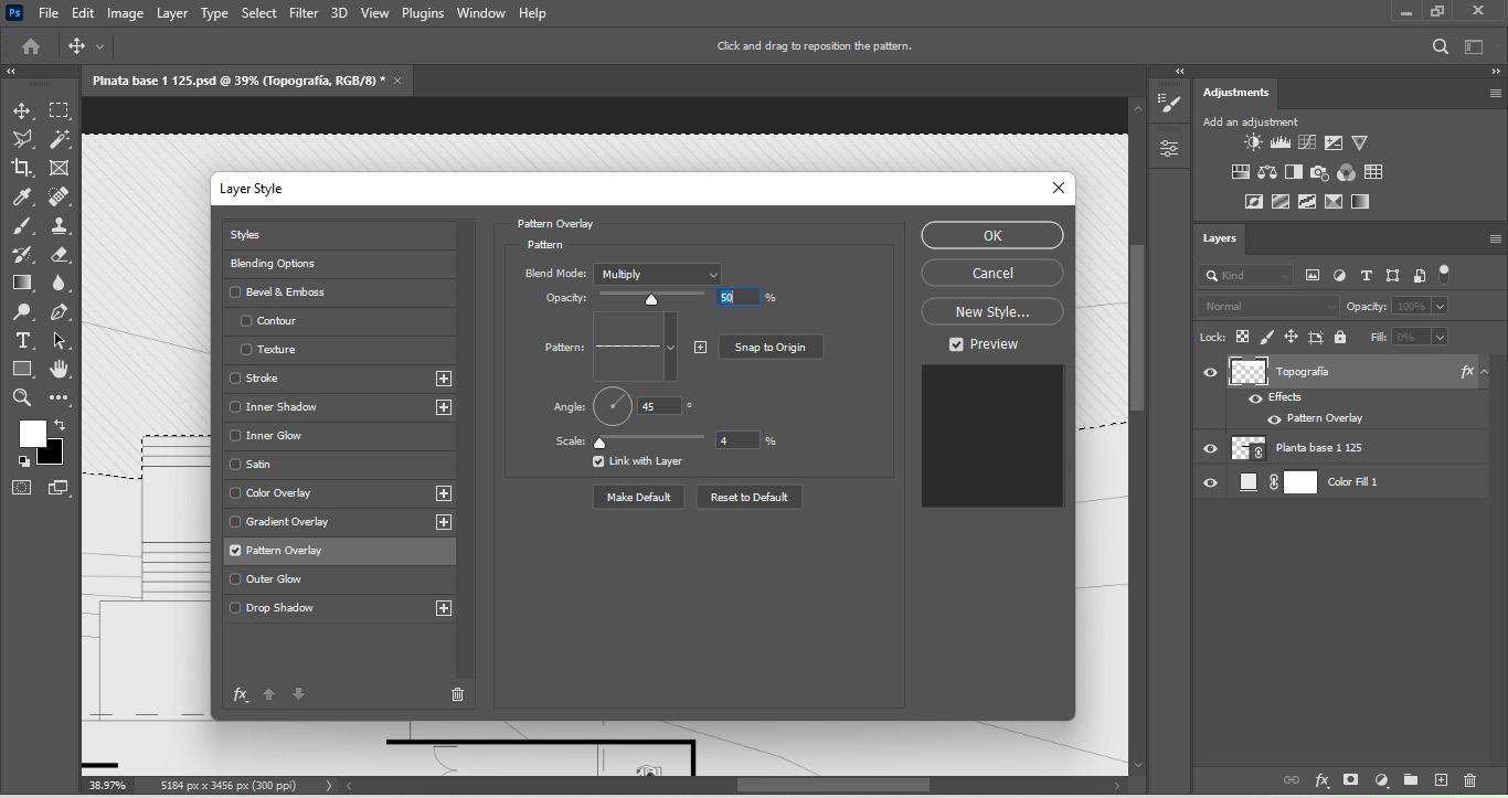 Para poder ver el patrón podemos rellenar el área de blanco o negro y reducir al relleno a 0% si es blanco o un 10% si es negro para un contraste sutil