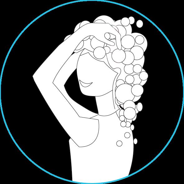 3. Aplica champú en tu cabello y restriega por unos minutos.