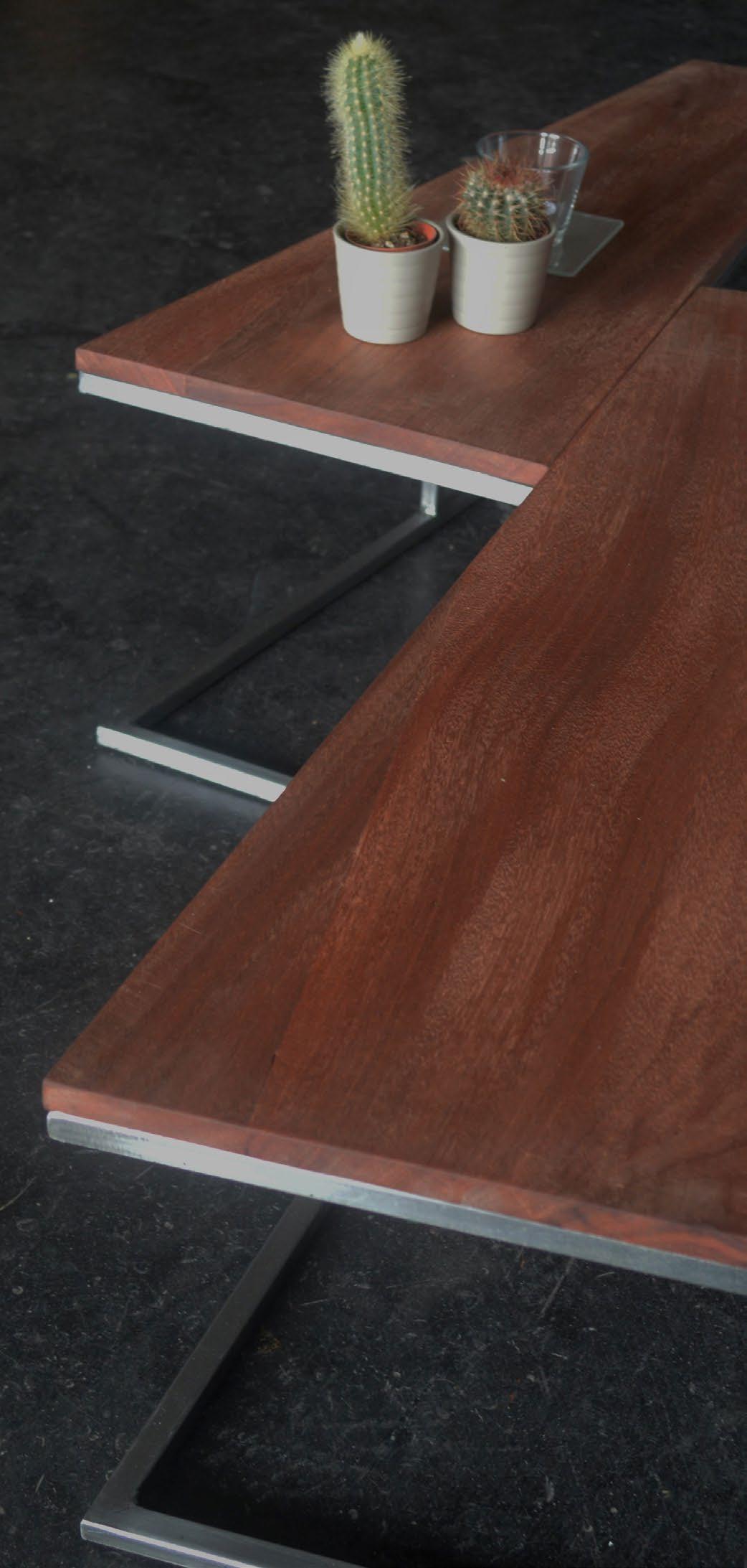 Modular coffee table - Steel/Meranti