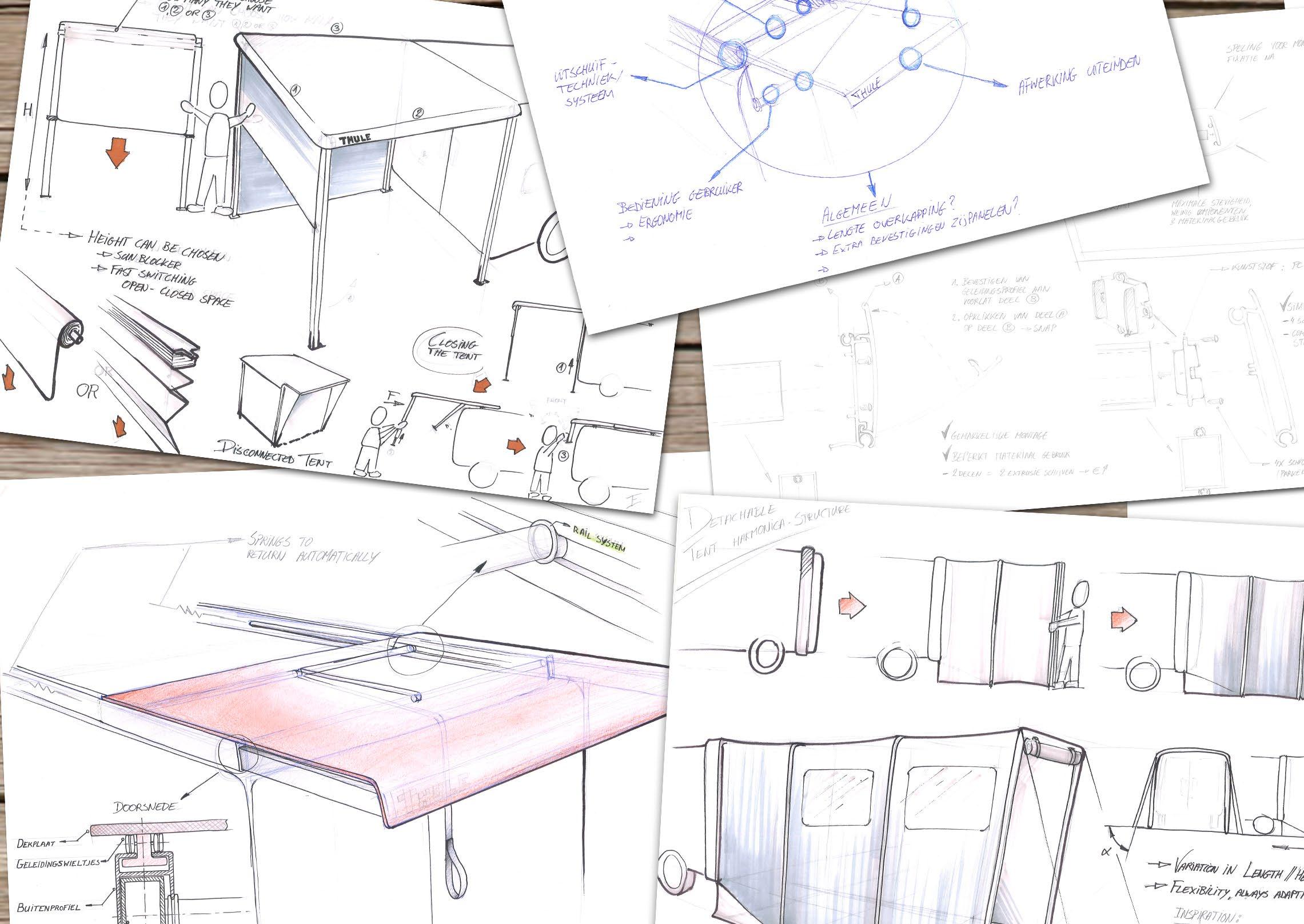 Everything starts with a good research and a lot of new ‘out of the box’ ideas: a complete closed tentstructure, an open structure,... A lot of ideas were generated and the best were selected for further research.