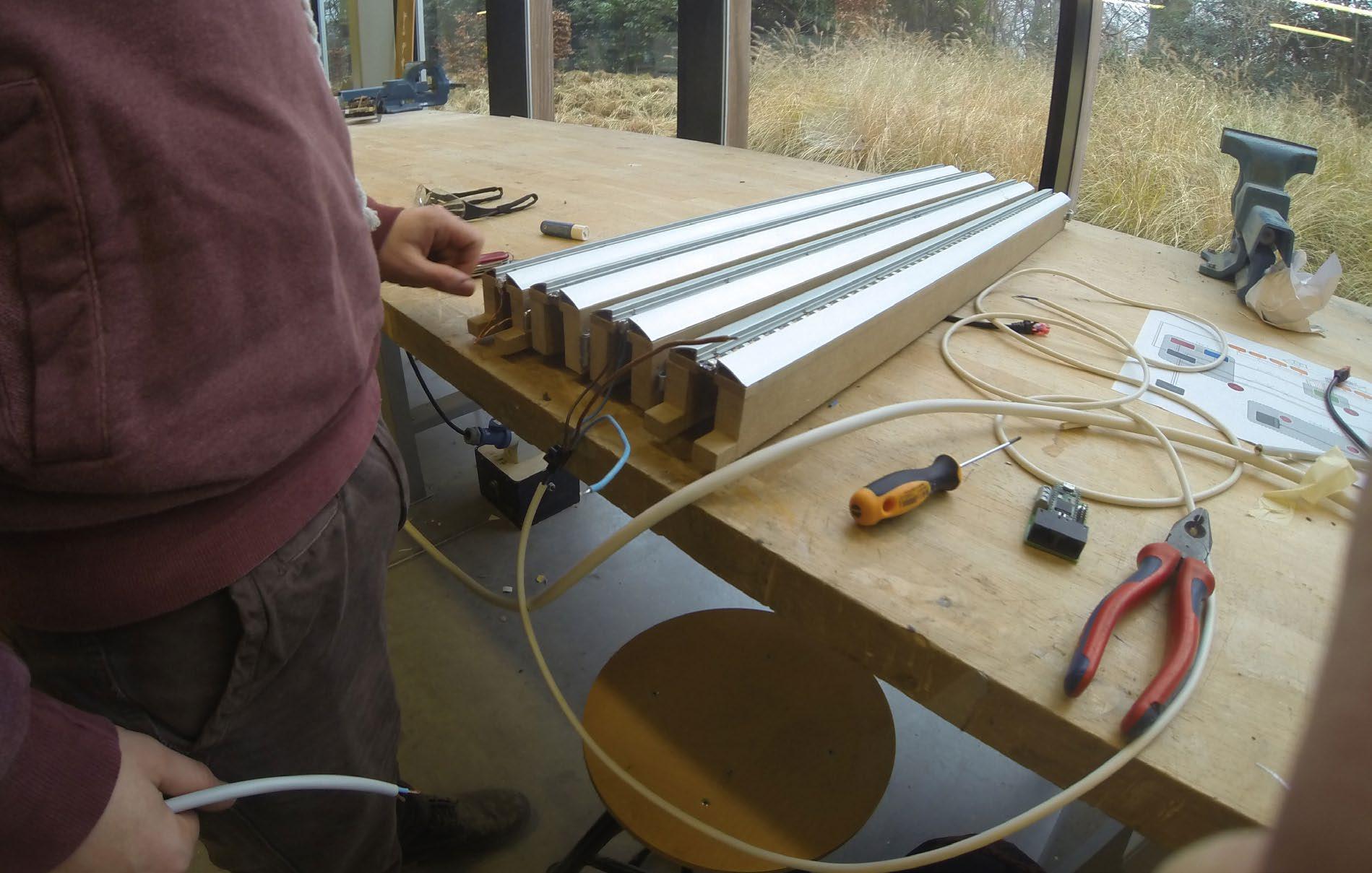 We ended up with a modular building block system - like lego - where every block could be made on the CNC- machine in our workplace. By doing this, assembly and disassembly becomes more easy, a lot of configurations are possible and on top of it we can say that the acoustic and environmental aspects are very good.