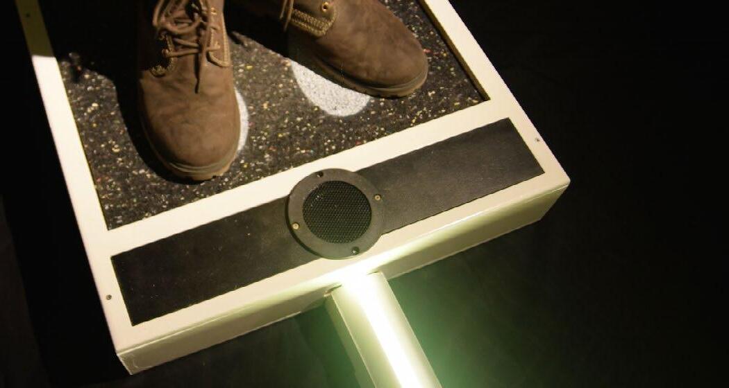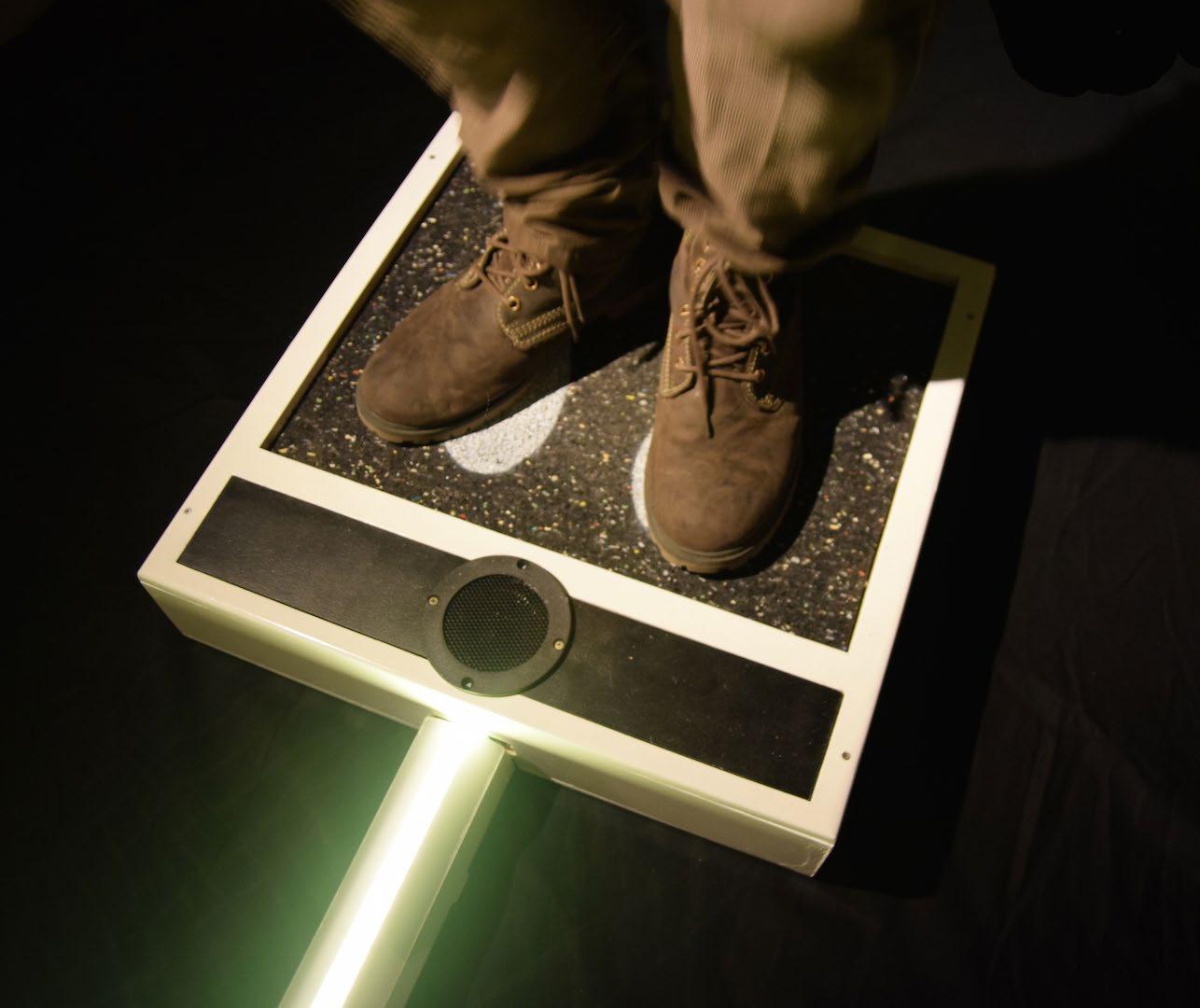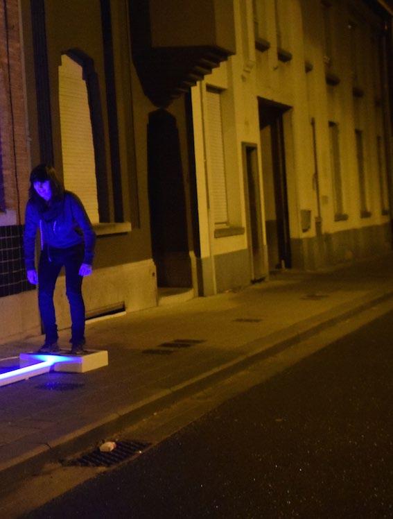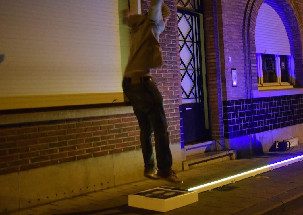 The initial question was to create a public installation to stimulate movement at the city of Kortrijk. We invented a simple competitive installation where different games with light and sound could be played on just by pushing a tile.