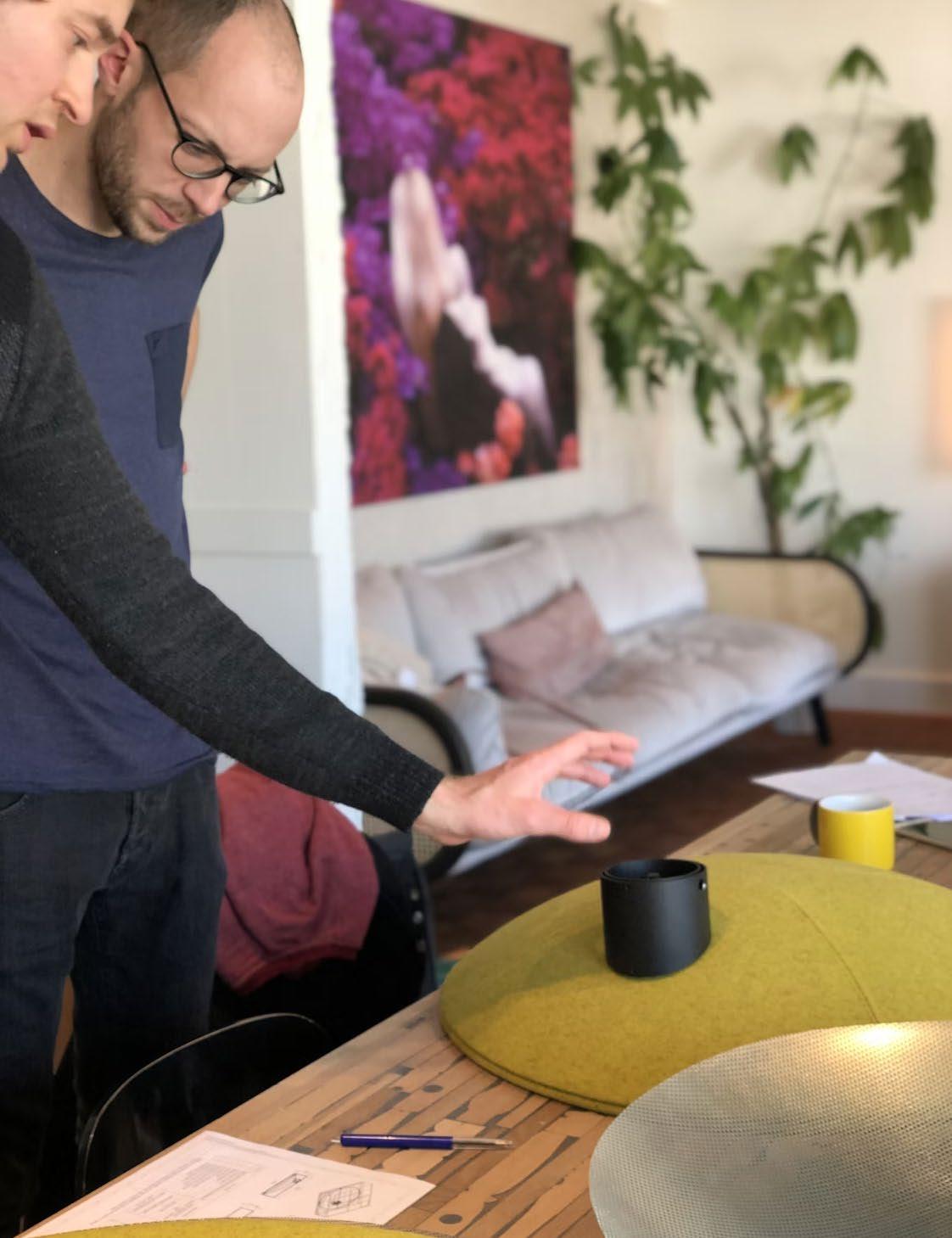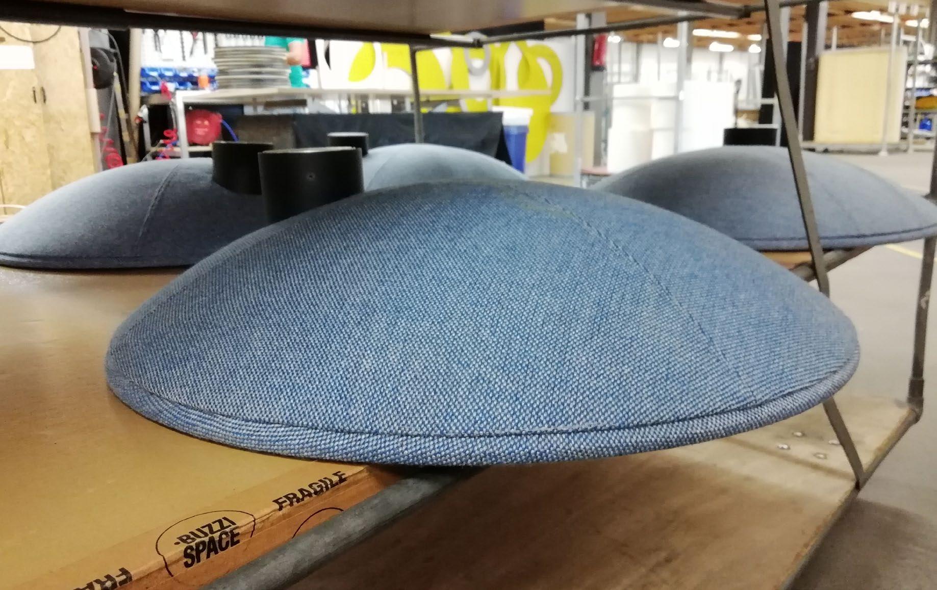 In the meantime we developed the upholstered part of the dish with a combination of wood, foam and a perforated metal spinned dish for optimal acoustic properties.