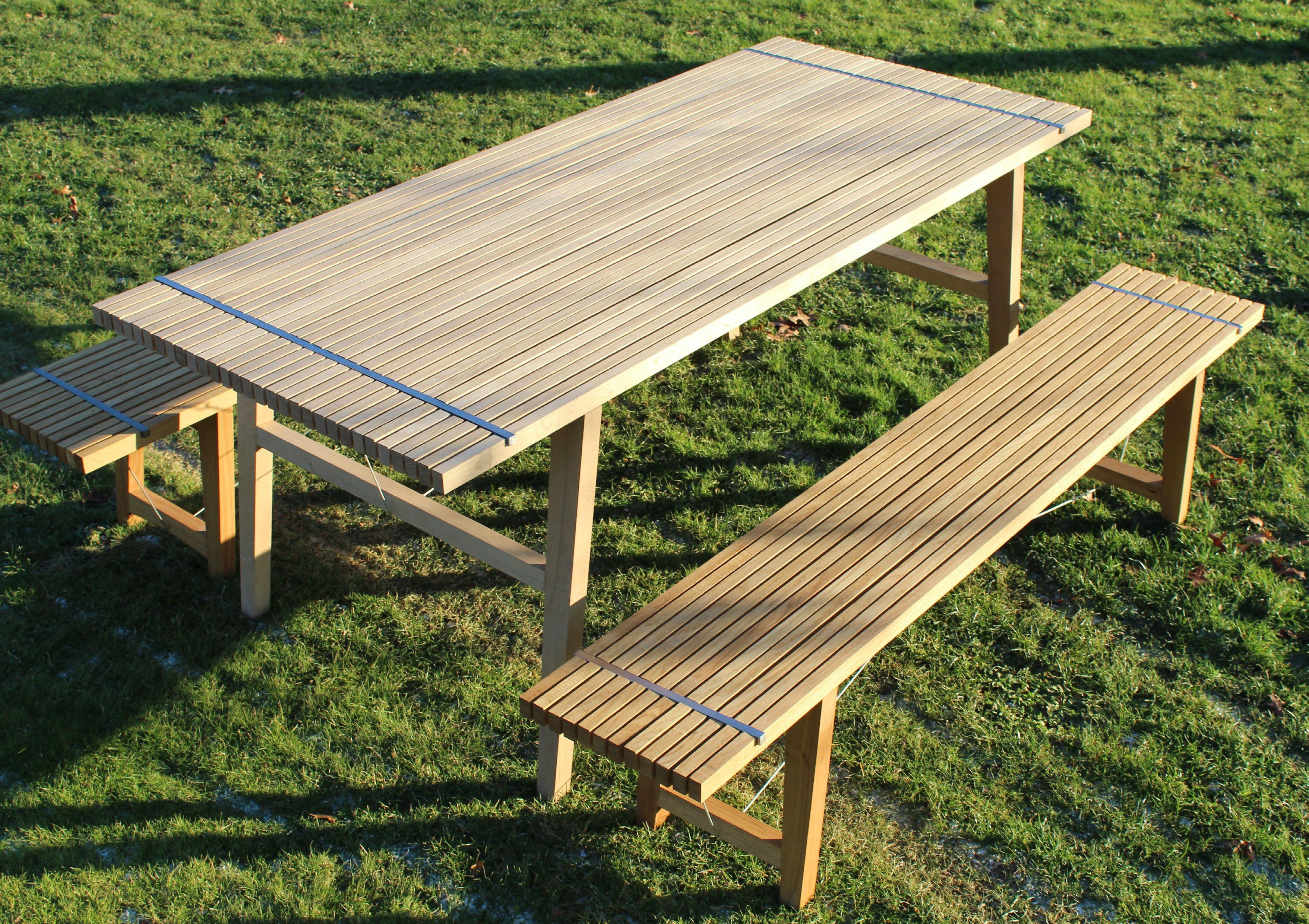 The result of this process is a durable bench that can be assembled without glue or any screws, you don’ t even need tools to assemble and disassemble the bench. This product is also delivered ‘flat- pack’ and can be easily stored inside in winter which provides a longer life span.