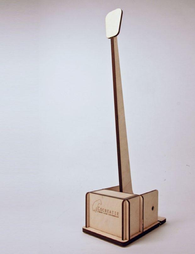 “Could it be possible to create something that allows my service dog, Gyproc, to operate the floor button of my Ikea lamp?” sounded the question of Heleen. After 28 prototypes we managed to find a simple but effective solution for Gyproc.