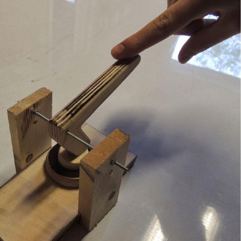 We achieved our goal by placing a long lever over the button. This lever must not sway to the wrong side so Gyproc always gets the proper feedback . This feedback is very important for the learning process of a dog . Due to the high lever it was not only possible for Gyproc to press the button, but also for Heleen, which gives the product an added value. When Gyproc hears the command ‘Veritas’, she pushes the lever eagerly.