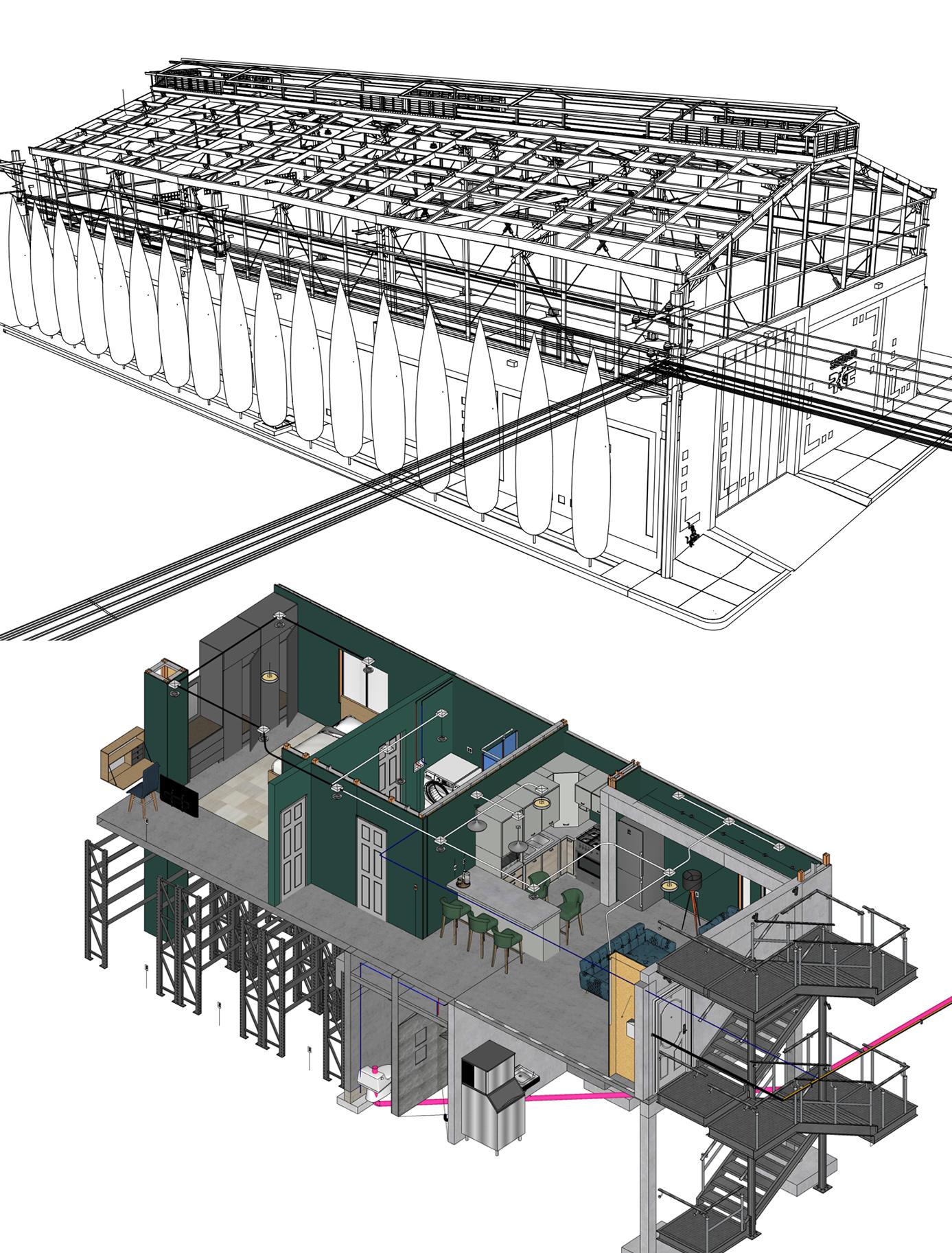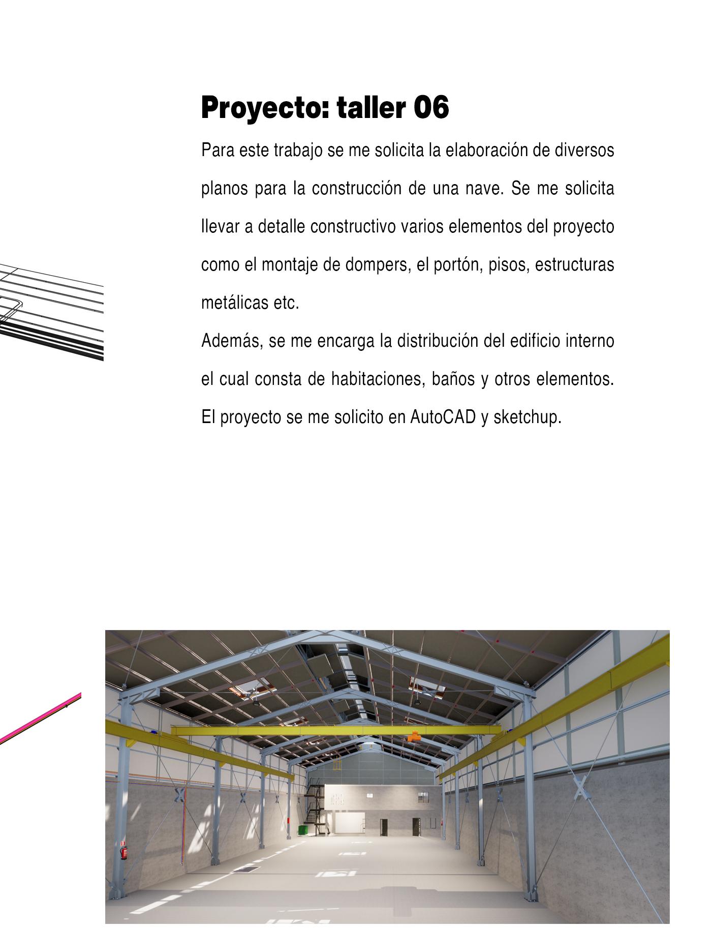 El proyecto consiste en dar seguimiento a un inmueble en proceso de construcción, generando los planos para su ejecución y supervisión de obra. La edificación está conformada por muros de mampostería complementados con paneles tipo sándwich en algunos muros y en la cubierta. Además, el proyecto incluye un área de habitaciones destinadas al hospedaje de trabajadores, así como las correspondientes líneas de infraestructura: drenaje, red eléctrica, suministro de agua y gas.
