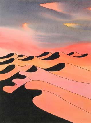 Un elemento irruptivo, como la presencia del agua en medio del desierto, crea un espejo ondulante que refleja únicamente este inmenso mar de oro y, en contraparte, el mar de obsolescencia nocturna, puntuado por los escasos destellos centelleantes de las estrellas.