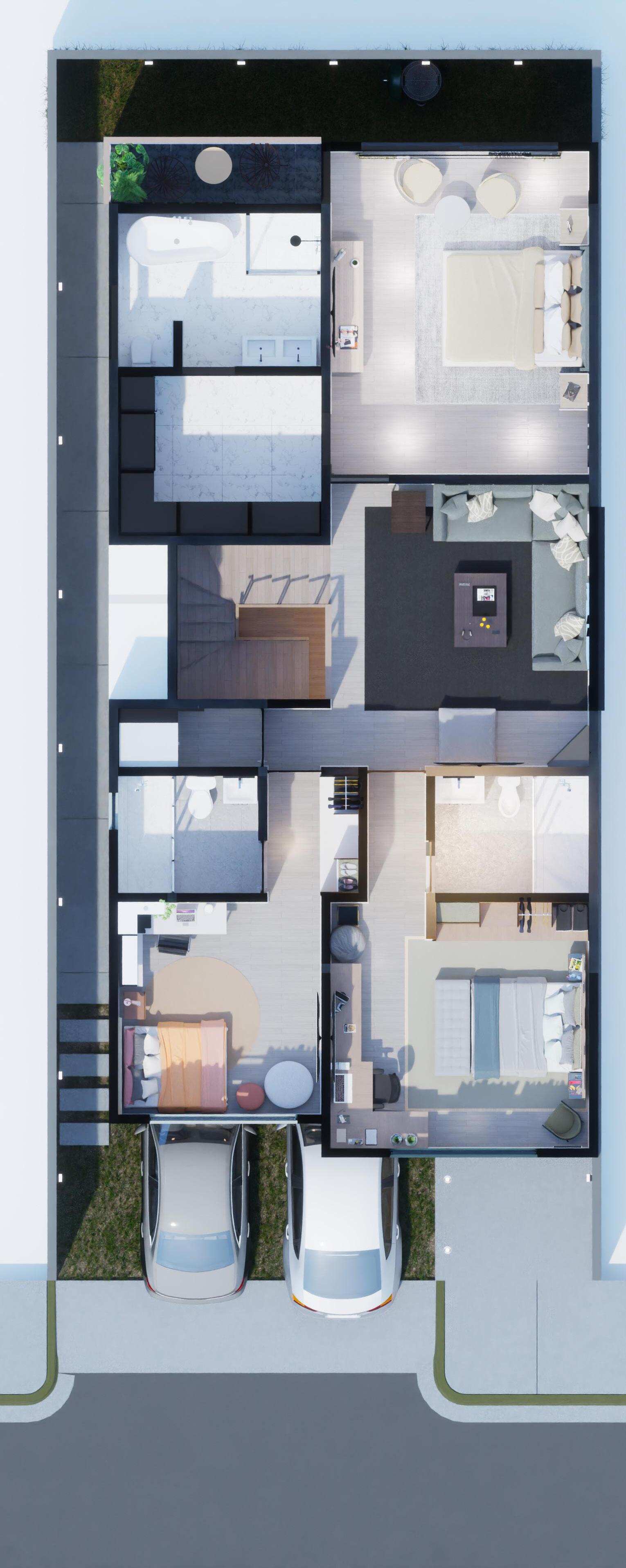 • Renderizado final: Se utilizaron herramientas especializadas en visualización arquitectónica para generar imágenes realistas, destacando la iluminación, sombras y ambientación del proyecto.
