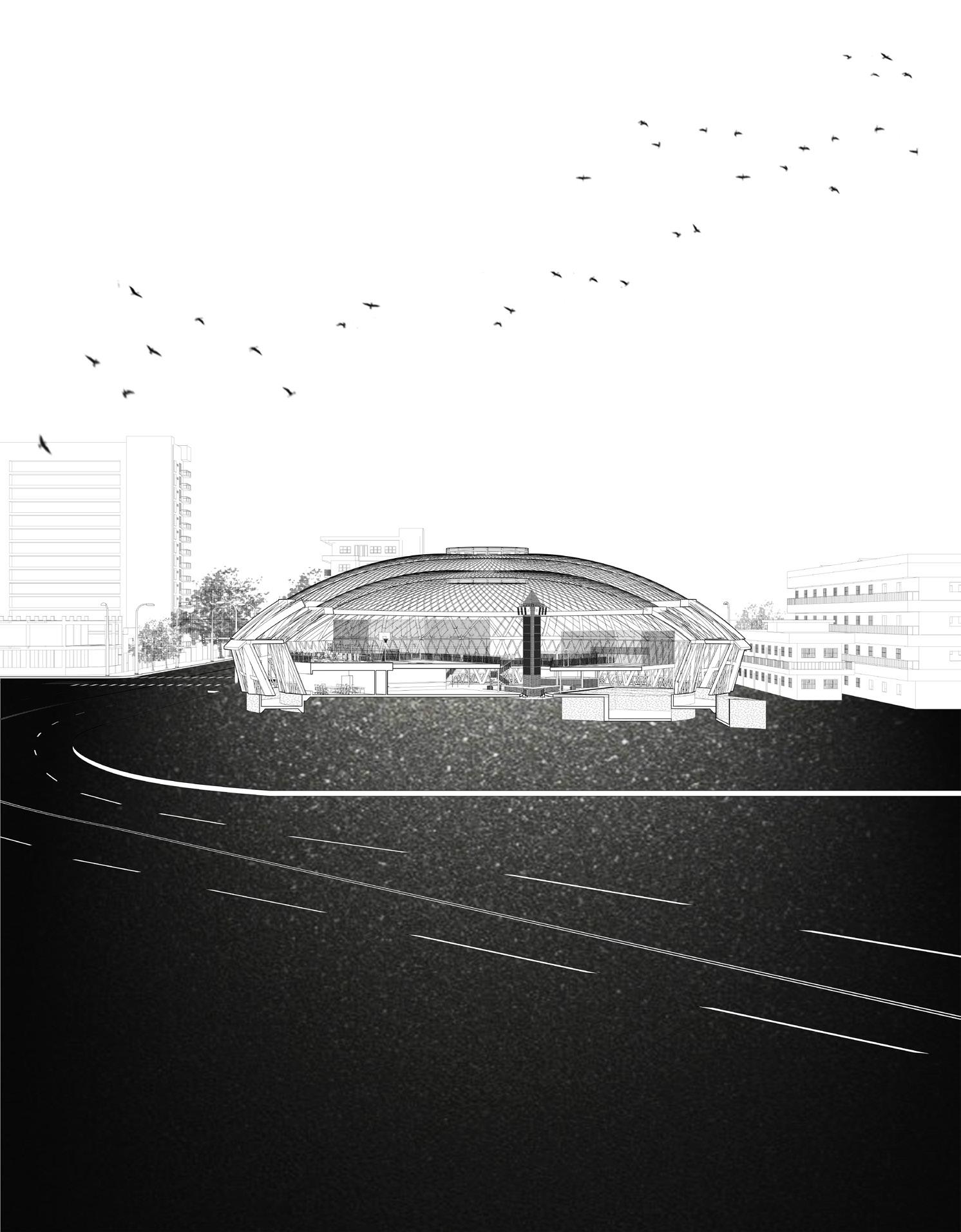 The Masterplan proposal creates an opportunity for bringing together a previously unbalanced arrangement of important civic institutions by creating a public focalpoint for association and circulation through the radial tensile canopy and walkway. It’s radial formation entends out into the new public library that provides users a visible relationship to the area’s busiest, railway lined street, adjacent to the site.