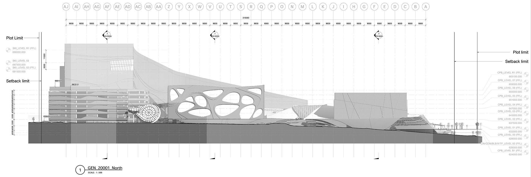 Exit 15 is a big project developed by AECOM in Saudi Arabia, Riyadh. The plot has more than 120.000 m2 and the building can be divided in 5 parts: The Complex (the mall), the Cinema, the Waterpark, the Ski building and the Car park building.