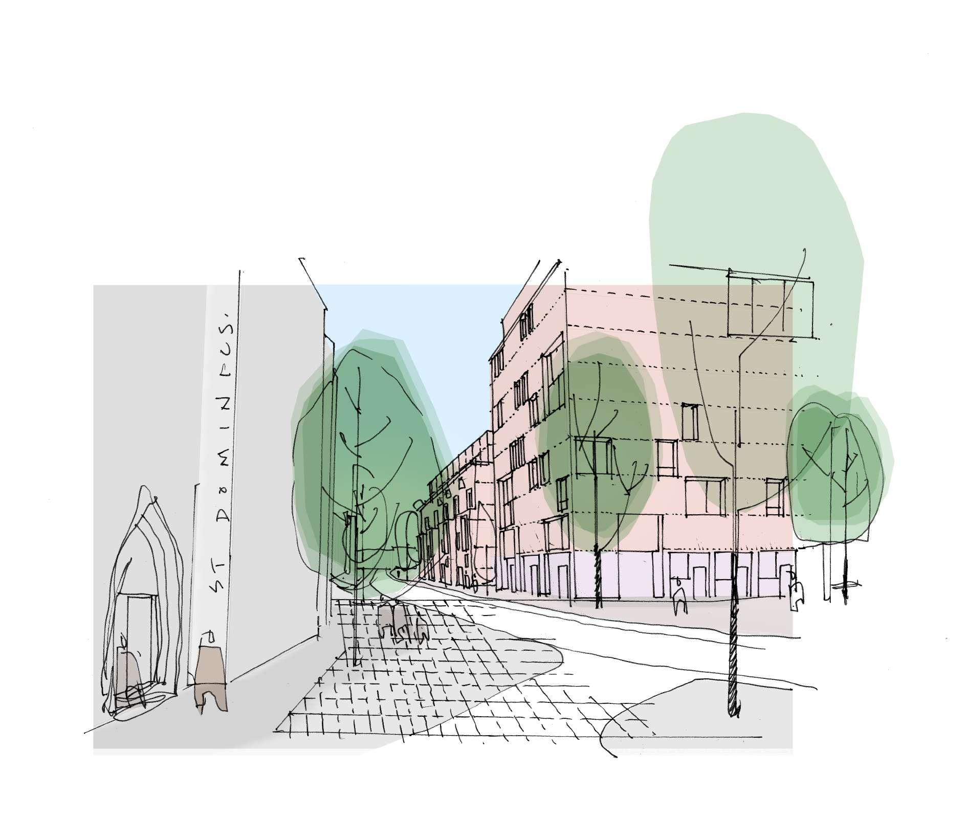 Adelaide Street Extra Care Residence’ is a residential development in Butetown, Cardiff for sufferers of dementia (also involving an adjoining commercial building accommodating retail and office spaces). The key theme of this project is to promote residents’ ability to become, and stay, familiar with their environment through a deep association with the area’s historic significance and a clear understanding of the site and its functionality. This is achieved through establishing a strategic tactile and visual connection with local ‘urban artefacts’ that are representative of Butetown’s history, precipitating what Aldo Rossi would call an implicit ‘collective memory’. Additionally, the project’s landscape and internal layout is designed, to a significant extent, to be visually permeable, making it relatively simple to identify location and function.