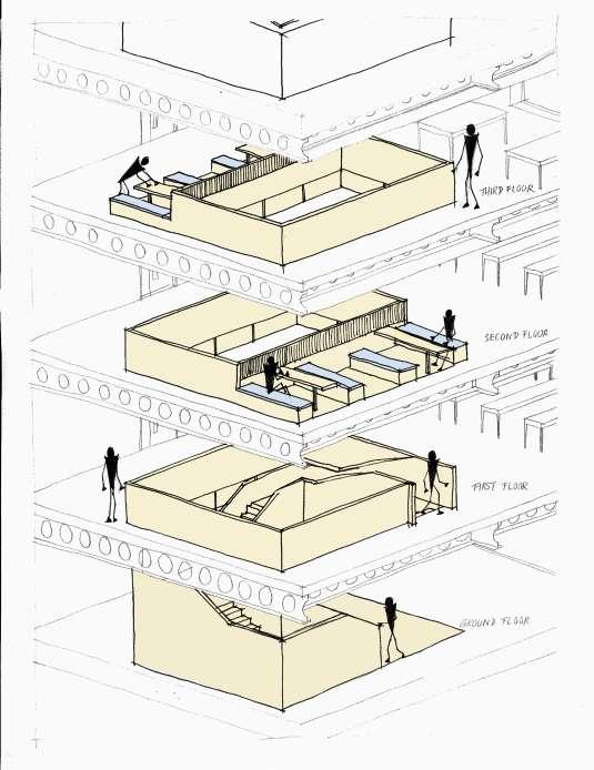 Much of my time on this project has involved me undertaking design tasks requiring me to spark inspiration over the technical execution of specific architectural points of interest. For example, I spent much of my time designing the small atrium that penetrates the centre of the building, bringing light into every level and encouraging chance encounters by acting as the primary circulation route.