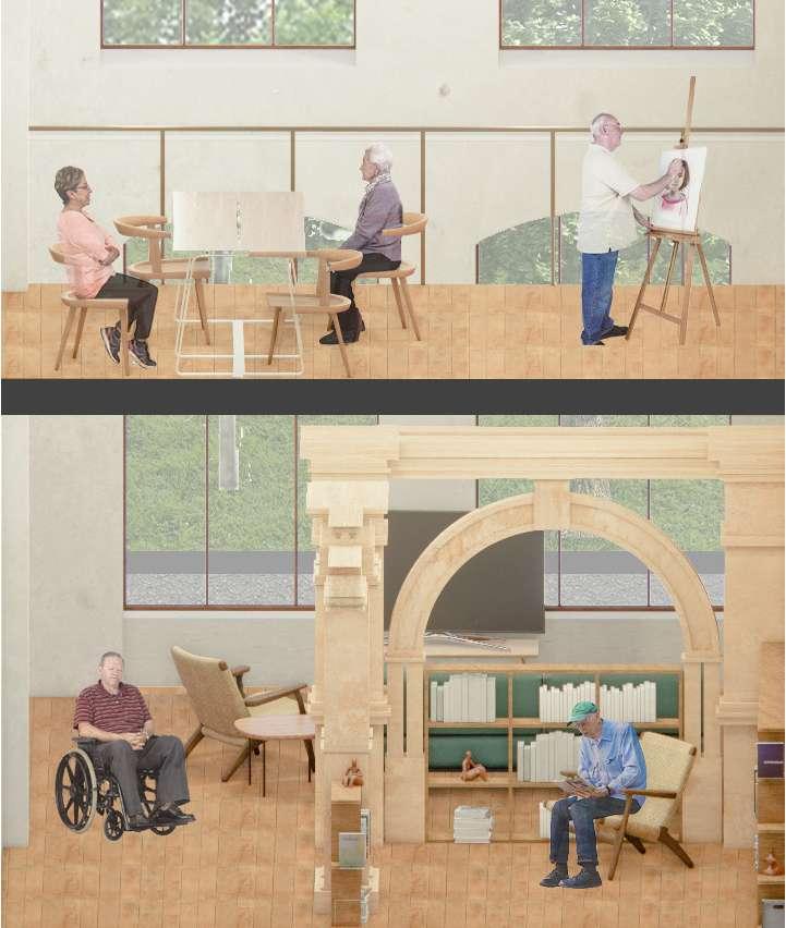 This project is a demonstration of the necessity to preserve and make use of our vacant and forgotten ‘urban artefacts’ as an act of both environmental and social good. The continued government legislation to enforce circular economic principles and reduce construction-related carbon emissions creates a helpful context for the future development and application of this design thesis, in which older age people suffering with dementia can be supported to participate and contribute to our communities.