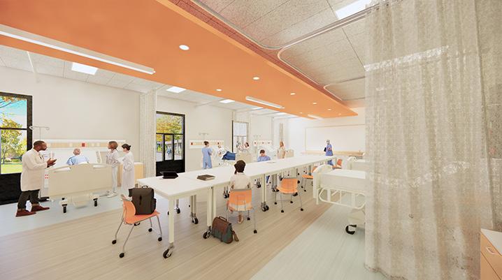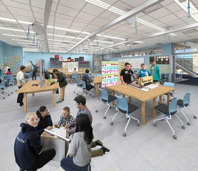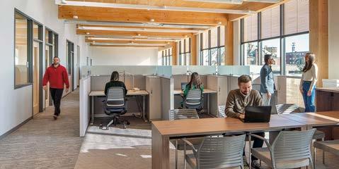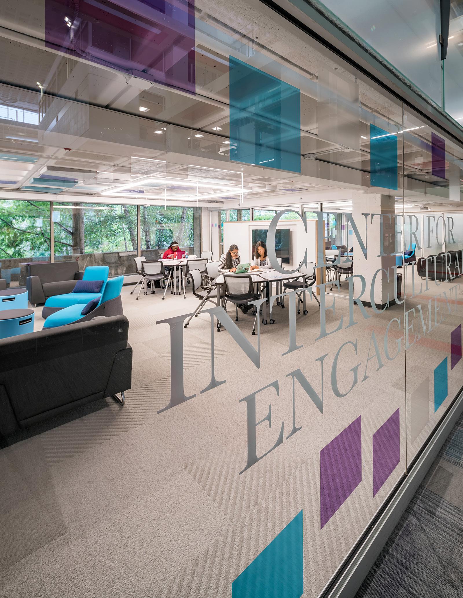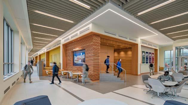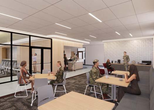 • Includes security situation center, collaborative office, work, meeting, and event space; classrooms; and media lab