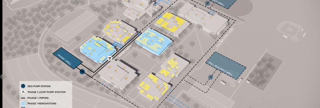 • Coupled with campus-wide decarbonization master plan involving geothermal loop