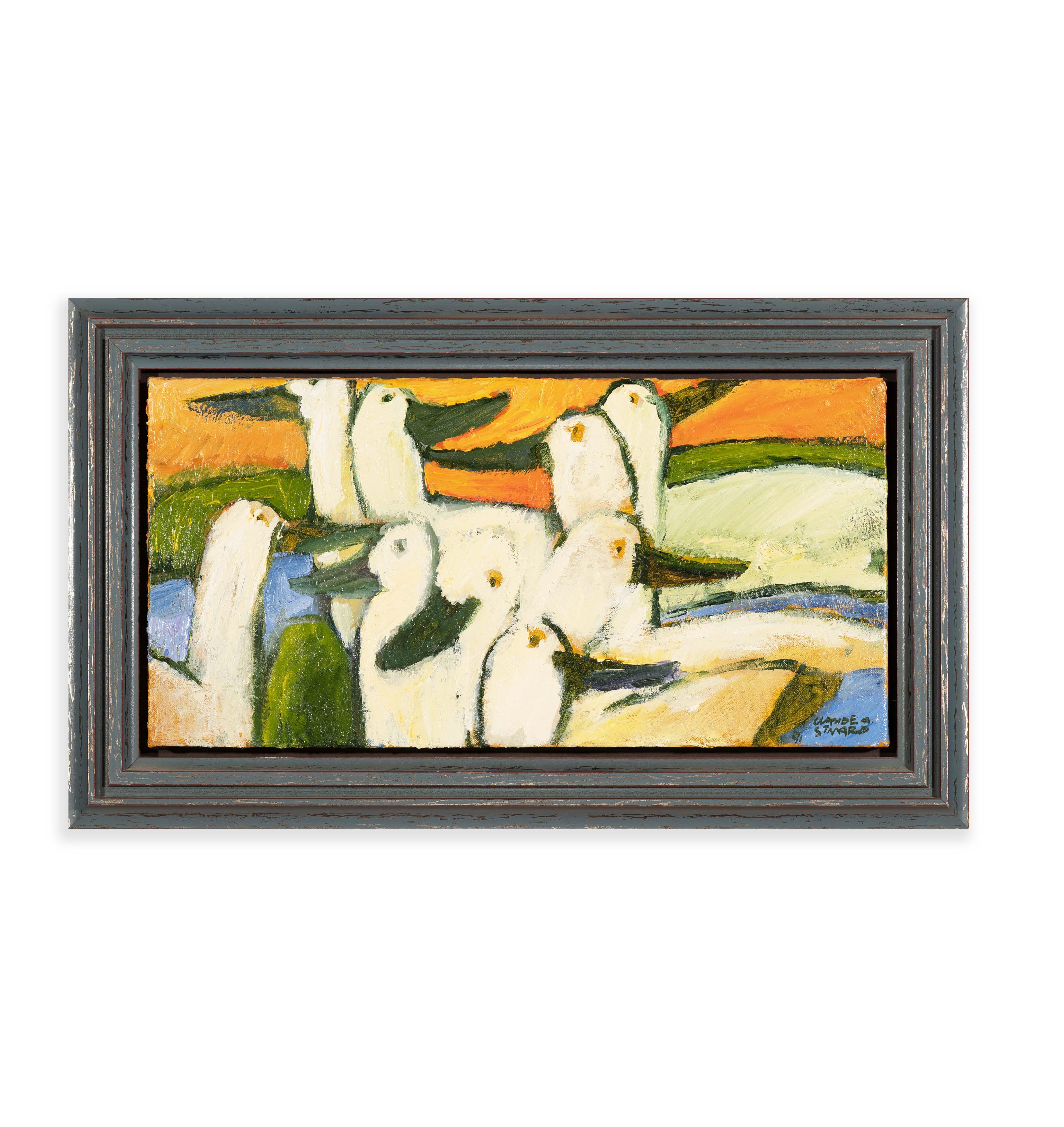Joan Small’s collection features six paintings by Nova Scotia artists Maud and Everett Lewis. Small is from the Digby, Nova Scotia; her father owned a lumber mill and supply store in the area and frequently provided Maud Lewis with painting surfaces.