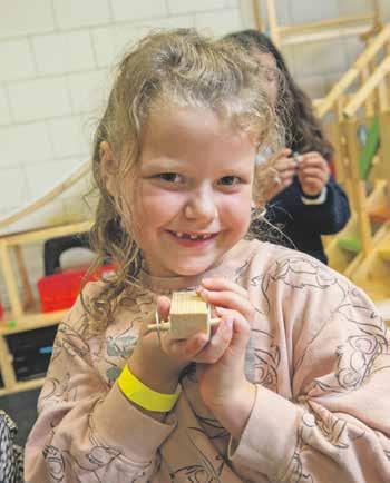 Ilayna (6): ‘We maken ook zelf zeep.’ ‘Ik stamp zeepkorrels fijn. Ik maak met water een bal van de fijngestampte zeepkorrels’, zegt Rosalie. ‘De zeepbal mag nu in een verfbadje. Ik kies blauw’, zegt Adriël. ‘De zeepbal krijgt ook een geurtje. Ik knijp met een pipet een paar druppels uit het potje met chocoladegeur. Ik knijp de druppels over de zeep. De zeep ruikt nu lekker naar chocolade. Ik vind het leuk dat ik in De Speelfabriek veel verschillende dingen kan ontdekken’, zegt Ilayna. Rosalie: ‘Ik vind het cool dat ik zelf de kleur en geur van mijn zeepje mag kiezen.’