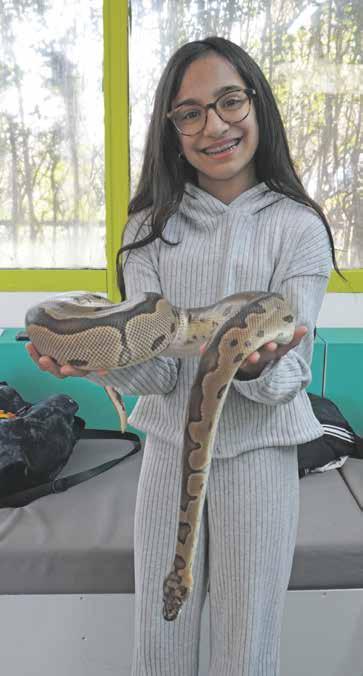 ‘De huid van een slang kan eraf vallen. Dat heet vervellen’, vertelt Faith (12). ‘Een slang krijgt dan weer een nieuwe huid. Ik vind het bijzonder dat dat kan’, vertelt Yusayra. Chaidrion: ‘De huid van een slang heeft een aparte structuur. De huid voelt zacht en plakkerig. Het lijkt me leuk om een slang als huisdier te hebben. Ik zou graag een grote slang willen. Ik kan hem dan goed vasthouden.’
