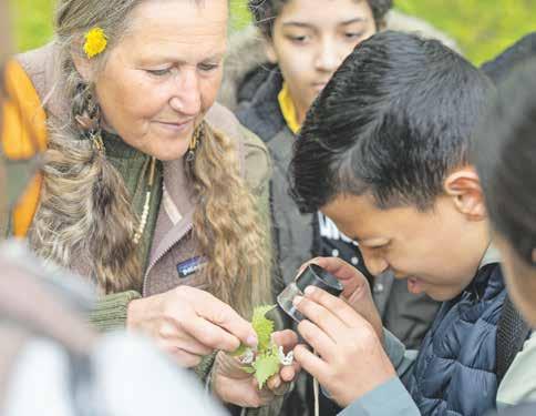 De leerlingen bekijken bloemen en planten op het Eiland van Brienenoord. Foto’s: Arjen Jan Stada