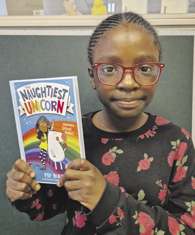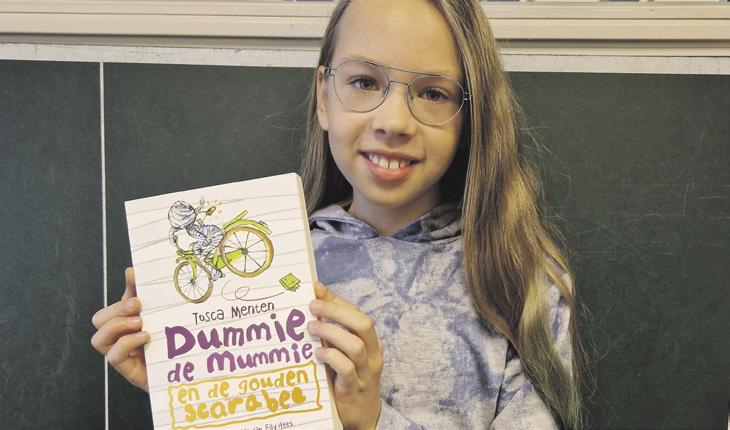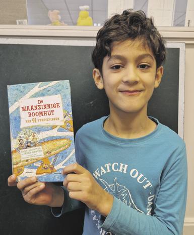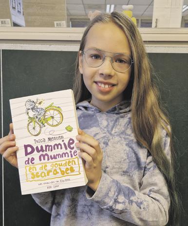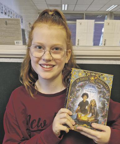 ‘Ik lees het Engelse boek. Ik kan dan gelijk Engels leren. Ik heb het gekozen omdat ik van eenhoorns houd. Het verhaal gaat over een meisje die naar een eenhoornschool gaat. Ze krijgt de meest ondeu gende eenhoorn. Ze kunnen samen medailles winnen. Ze moeten dan wel de opdrachten halen.