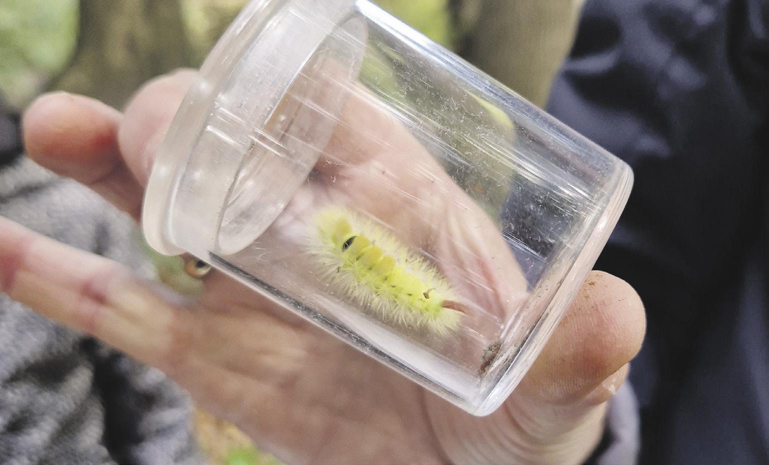 Evan: ‘We leggen een wit doek onder wat bomen. We schudden voorzichtig aan een paar takken. Er vallen allerlei beestjes op het witte doek. Er zijn verschillende spinnen bij.’ ‘Ik houd helemaal niet van spinnen’, zegt Jaidy. Ria: ‘Jullie mogen de beestjes onderzoeken in de potjes. We laten ze daarna weer vrij. We zorgen zo voor de natuur.’