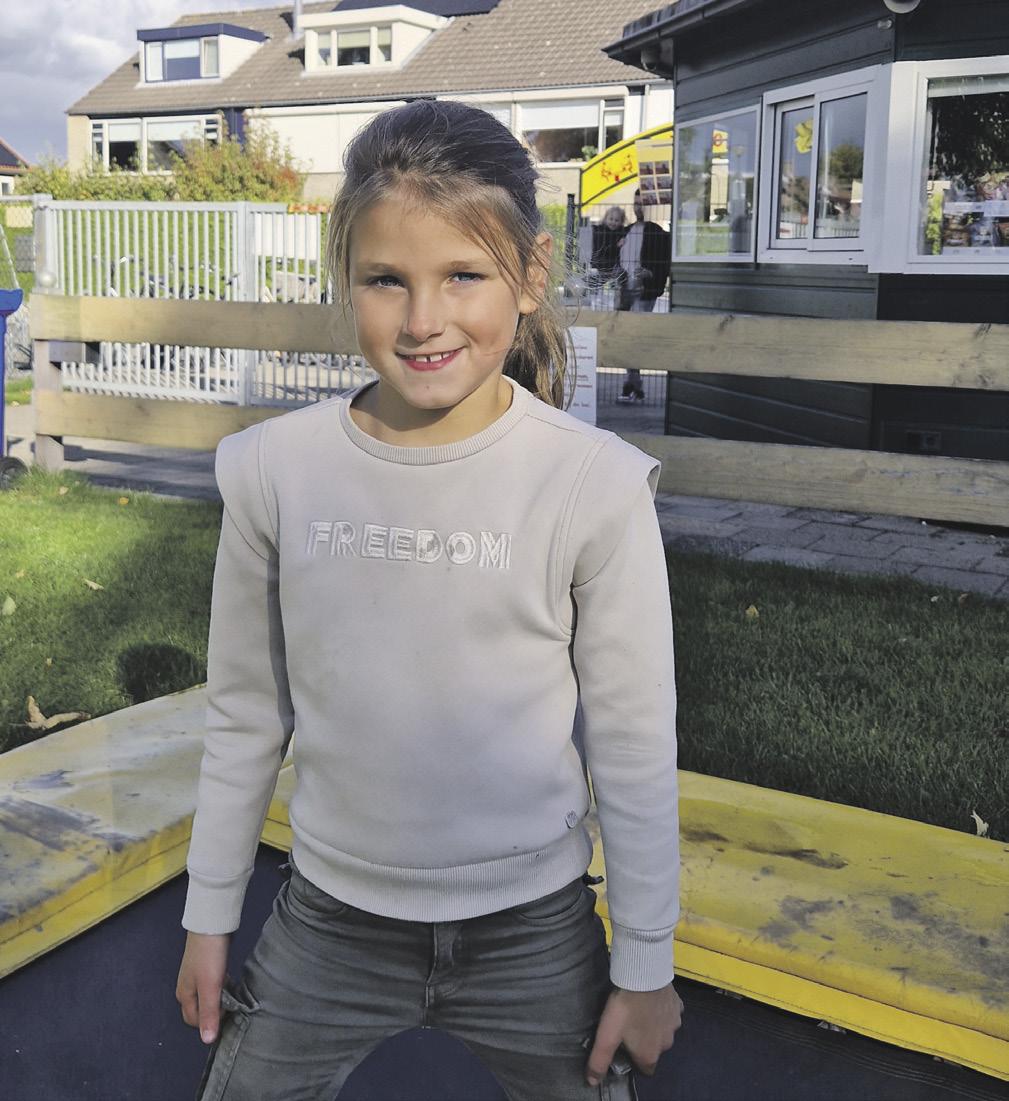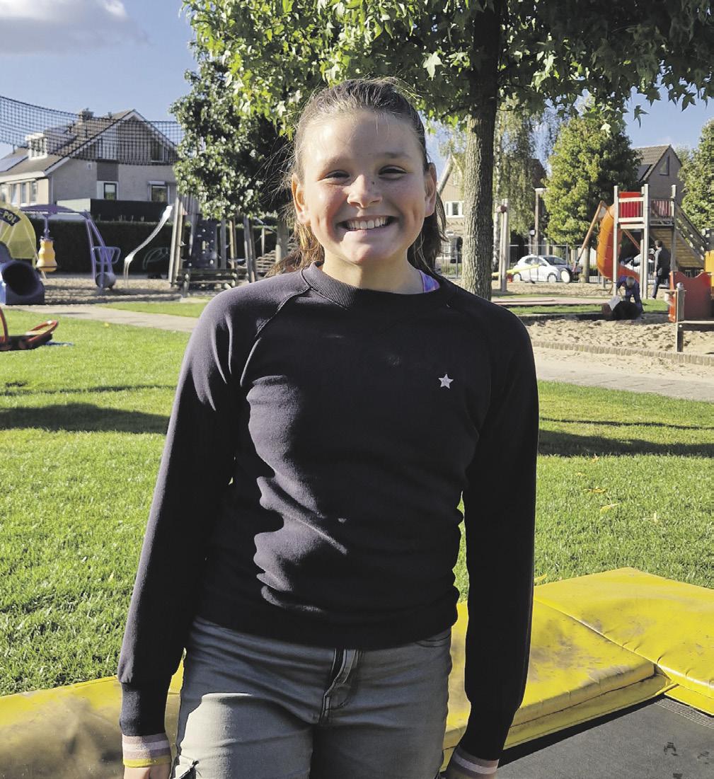 Wat ik graag wil ‘Ik vind het belangrijk dat kinderen meer bewe gen onder schooltijd. Dat kan door talentklassen op school voor sport. Ik zou ook graag groenere speeltuinen zien. Je kunt er fijn spelen. Meer groen helpt ook de insecten om te overleven. Ik zou ook wel iets meer prullenbakken willen tegen milieuvervuiling’, vertelt Daniël.