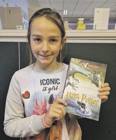 ‘Het is een spannend boek. Harry en zijn vrienden Hermelien en Ron krijgen van profes sor Perkamentus een belangrijke opdracht. Ze moeten een paar speciale voorwerpen opsporen en vernietigen. Ik houd van de magie en de vriendschap. Het is een dik boek. Dat vind ik fijn. Je hebt dan lang leesplezier.’