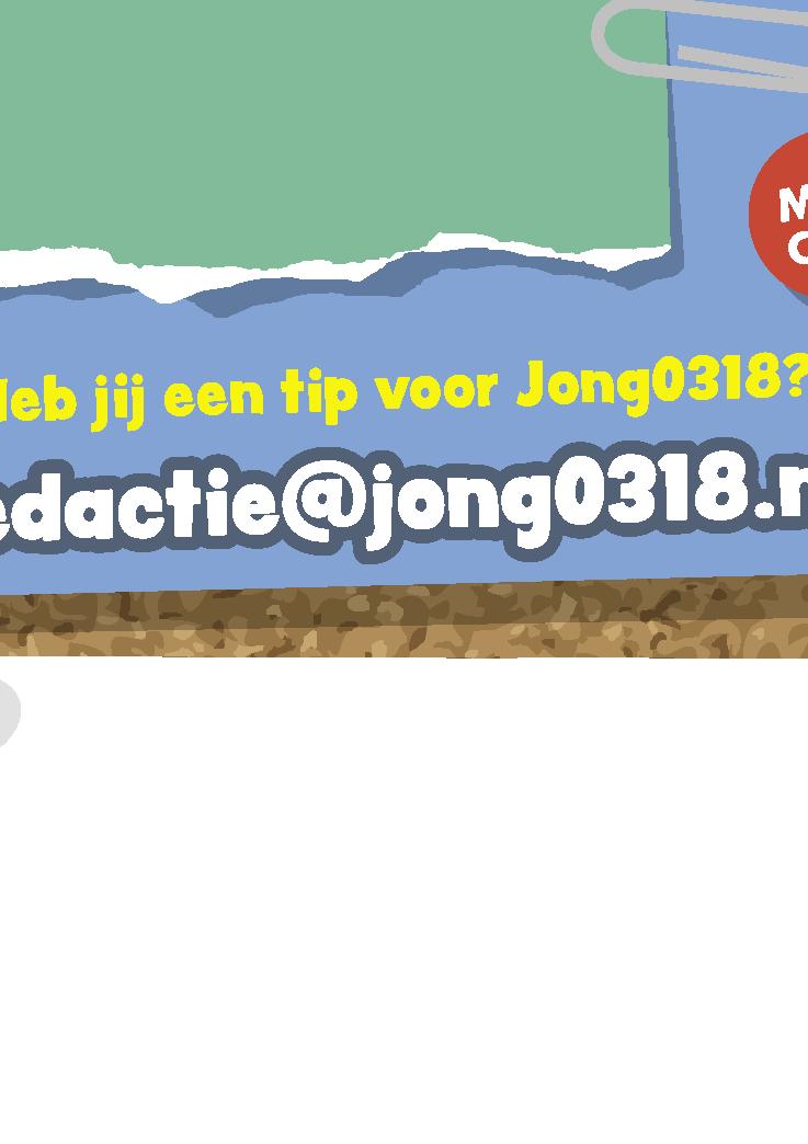Heb jij een tip voor Jong0318? OPRICHTER & HOOFDREDACTEUR: MARISSA DIEPEVEEN JOURNALIST: SAMANTHA FERKRANUS FOTOGRAFEN: GERT-JAN BORST GOVERT GOVERS ARJENNE NIESSINK VORMGEVING: ERIKA KOSTER JONG0318 - OKTOBER 2022 JAARGANG 1 - EDITIE 4 OPLAGE: 12.000 KRANTEN JONG0318 WORDT MEDE MOGELIJK GEMAAKT DOOR: